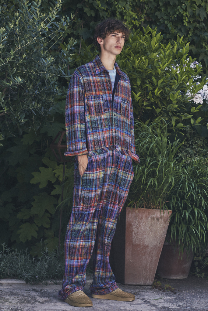 The relaxed, effortless chic of the collection was obtained by matching roomy pants with deconstructed blazers, as well as comfortable shorts with boxy striped T-shirts. There were also knitted anoraks with a youthful air, as well as a range of jumpsuits in different patterns, from Madras to think stripes.