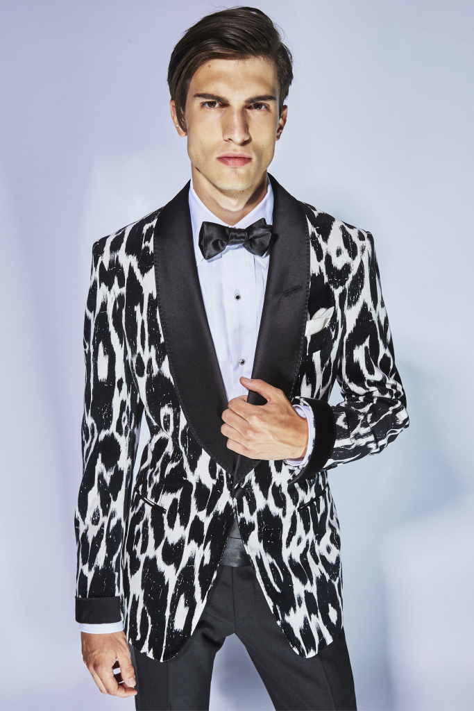 The neutral palette of past seasons was left way behind as Ford headed south for inspiration. Dinner jackets came in a rich bougainvillea pink silk or with multicolored psychedelic patterns. Some lightweight velvet ones winked to Seventies Pucci, with their vibrant swirls of pink, black, white, green and blue.