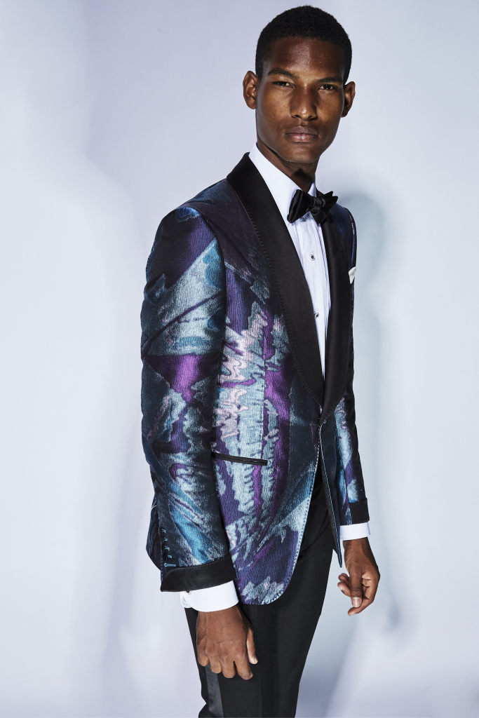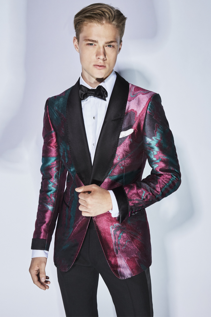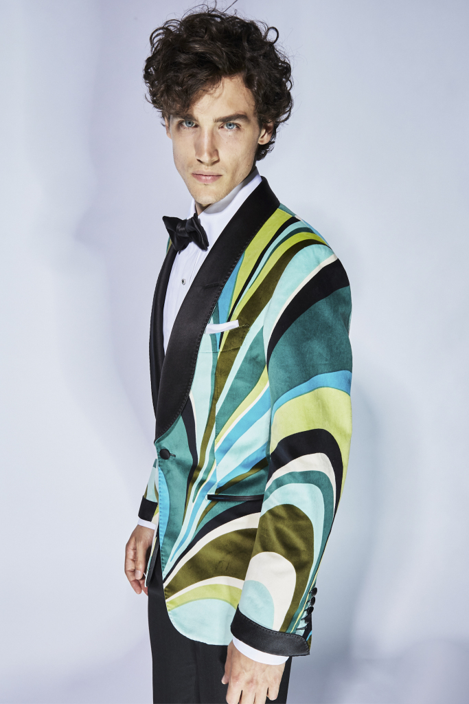 The neutral palette of past seasons was left way behind as Ford headed south for inspiration. Dinner jackets came in a rich bougainvillea pink silk or with multicolored psychedelic patterns. Some lightweight velvet ones winked to Seventies Pucci, with their vibrant swirls of pink, black, white, green and blue.