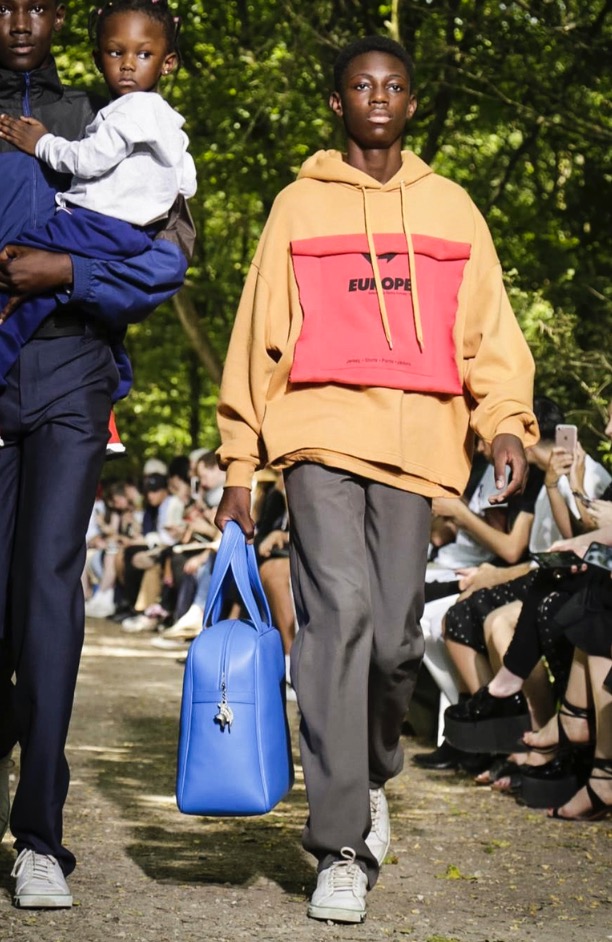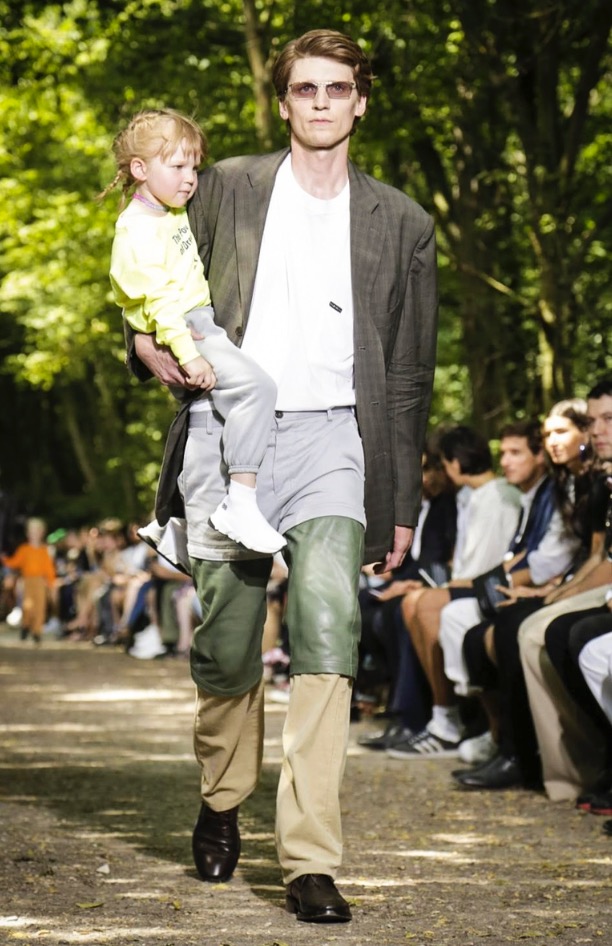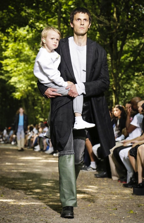 That’s when you know time goes by. One of our favorite German models Tillmann from Cologne is a papa as well. Here seen with Lou in a Balenciaga show in the Bois de Boulogne. King of fashion Demna Gvasalia showed these cool three panel pants and by adding model offspring to his casting he made a strong statement for tomorrow. Paris men’s kicked off strongly.