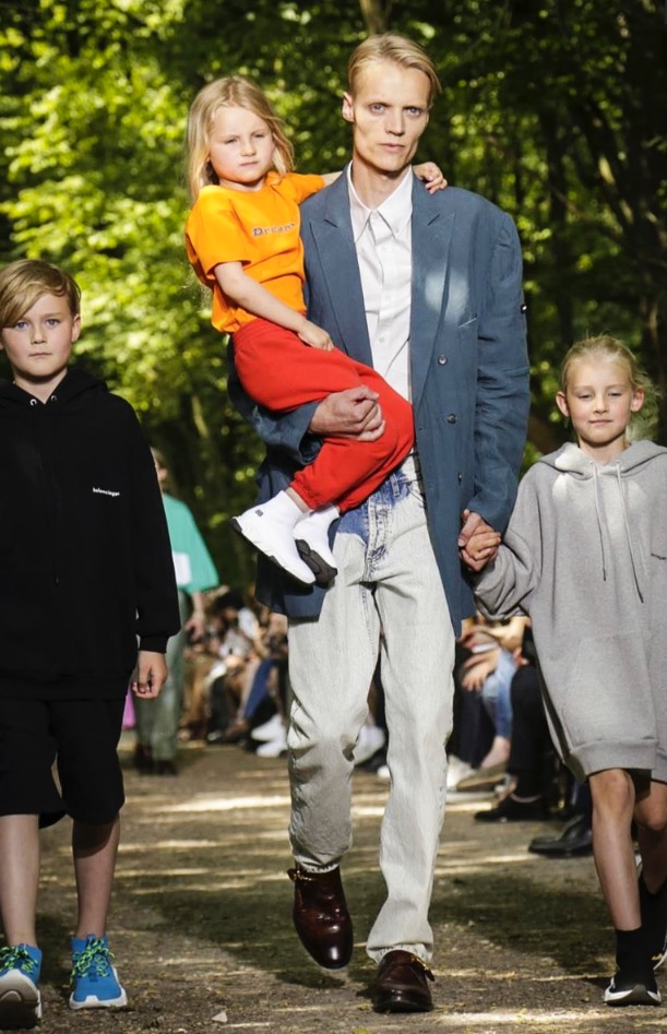 With a direct outdoor fashion show at Bois de Boulogne in Paris, Balenciaga celebrated the family by summoning parents and their children (including Christoffer Fagerli, above) to scratch the armed walkway this morning during men’s fashion week.