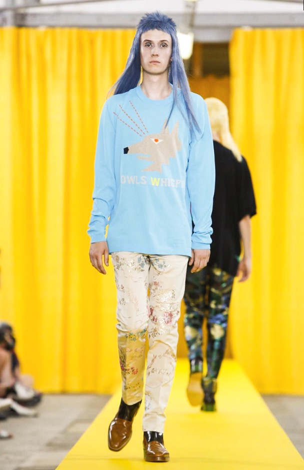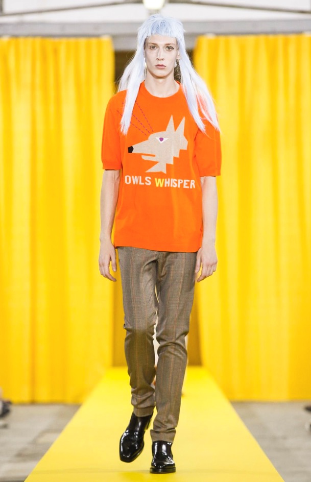 Walter Van Beirendonck cryptically titled his spring collection “Owls Whisper,” which, when paired with “The Pure and the Damned” show tune, gave the sense that the designer was wistful for less tainted times at Garage Lubeck in Paris.