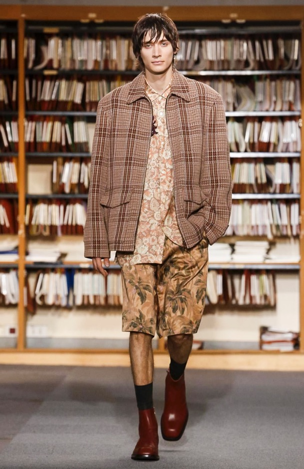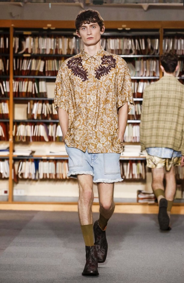 His suggestion for beating the heat? Suits with shorts, with socks and sandals no less. Though office dress codes have been relaxed, it’s safe to say this look won’t be sweeping the boardroom. Short-sleeved shirts — including some silky options melding prints and embroidery — seemed like a more compelling option.