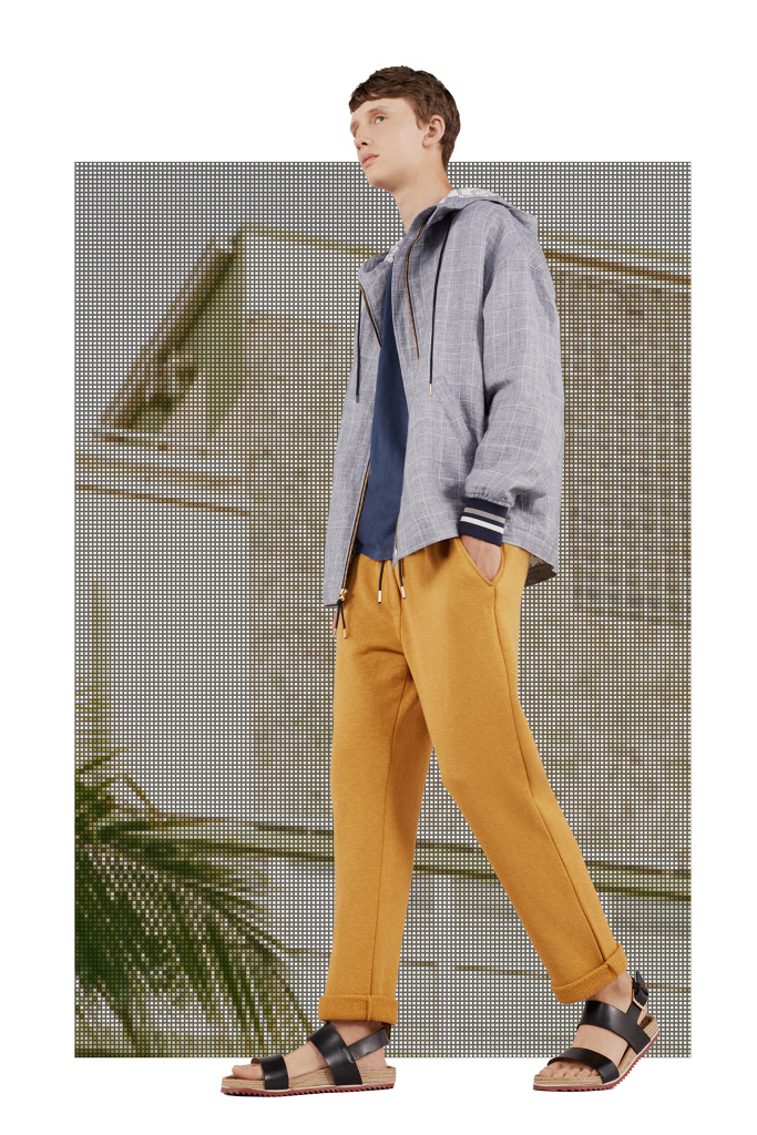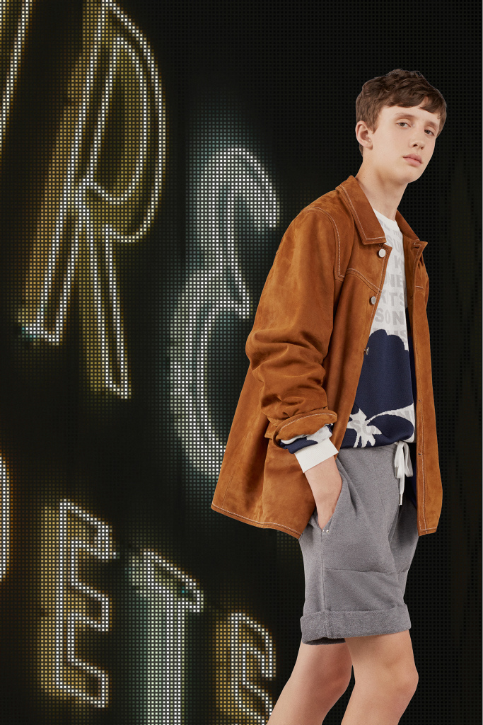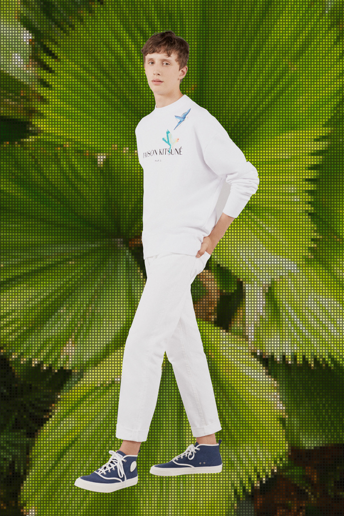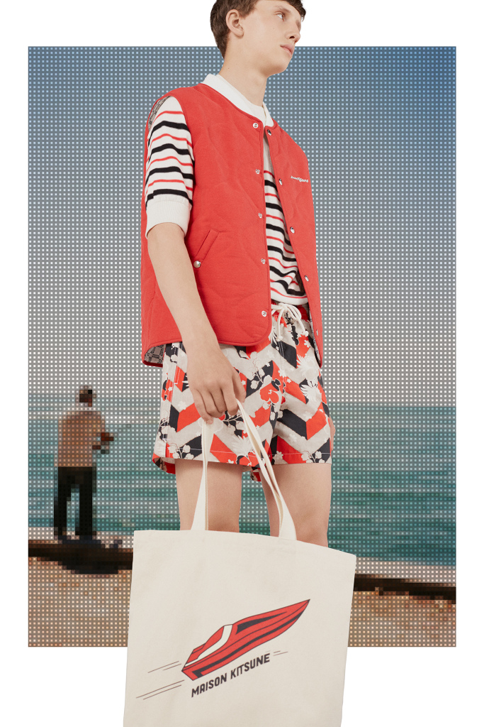 Maison Kitsuné designers Gildas Loaëc and Masaya Kuroki took a cue from the U.S. once again for their spring collection. But rather than focusing on American popular culture like they did for fall, the irreverent duo envisioned a made-up place, called “Romance.” It’s their ideal fusion of Los Angeles and Miami, with everything that imaginary mix conjures up. Hot weather? Check. Easy living? Check. Surfing culture? Check. Speedboats? Check.