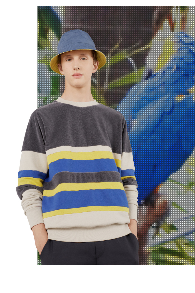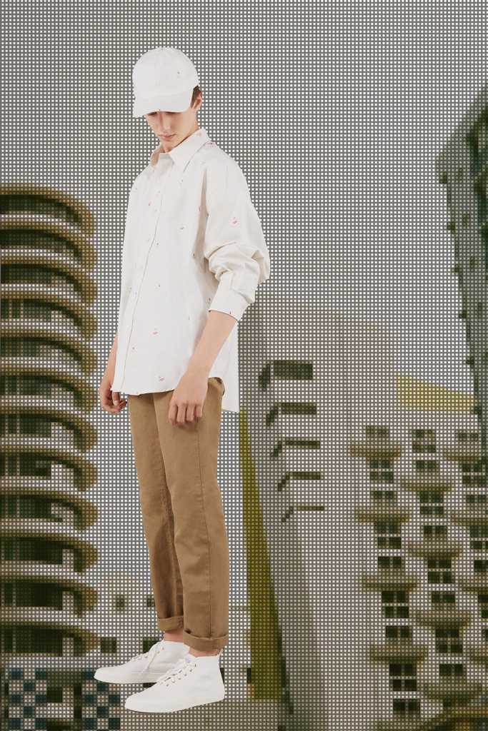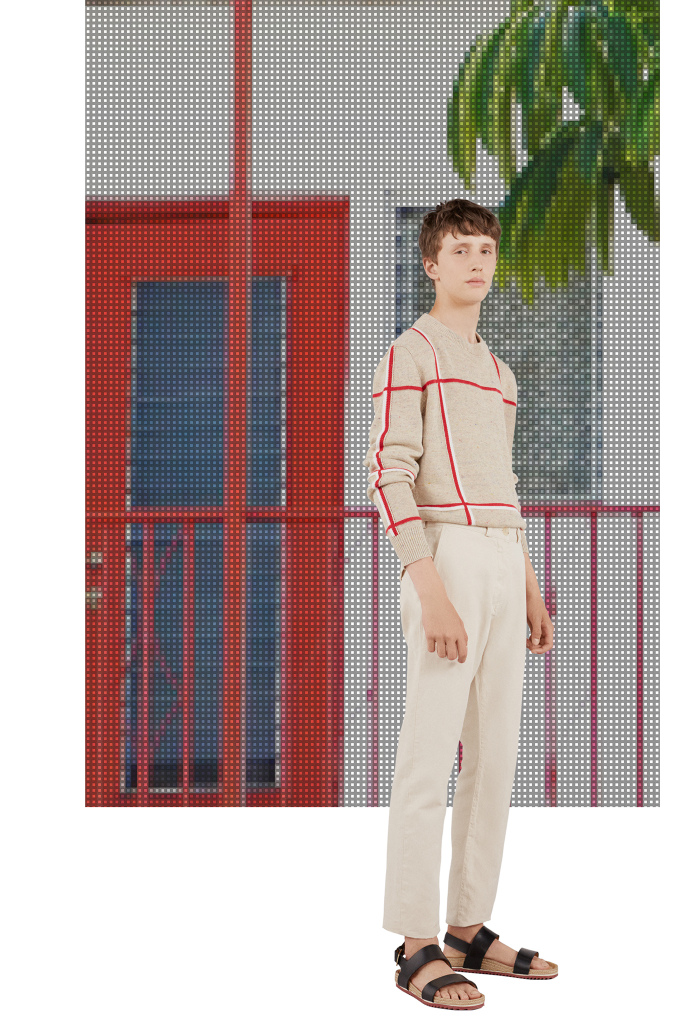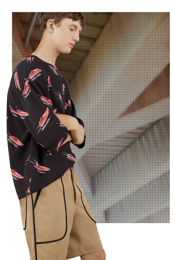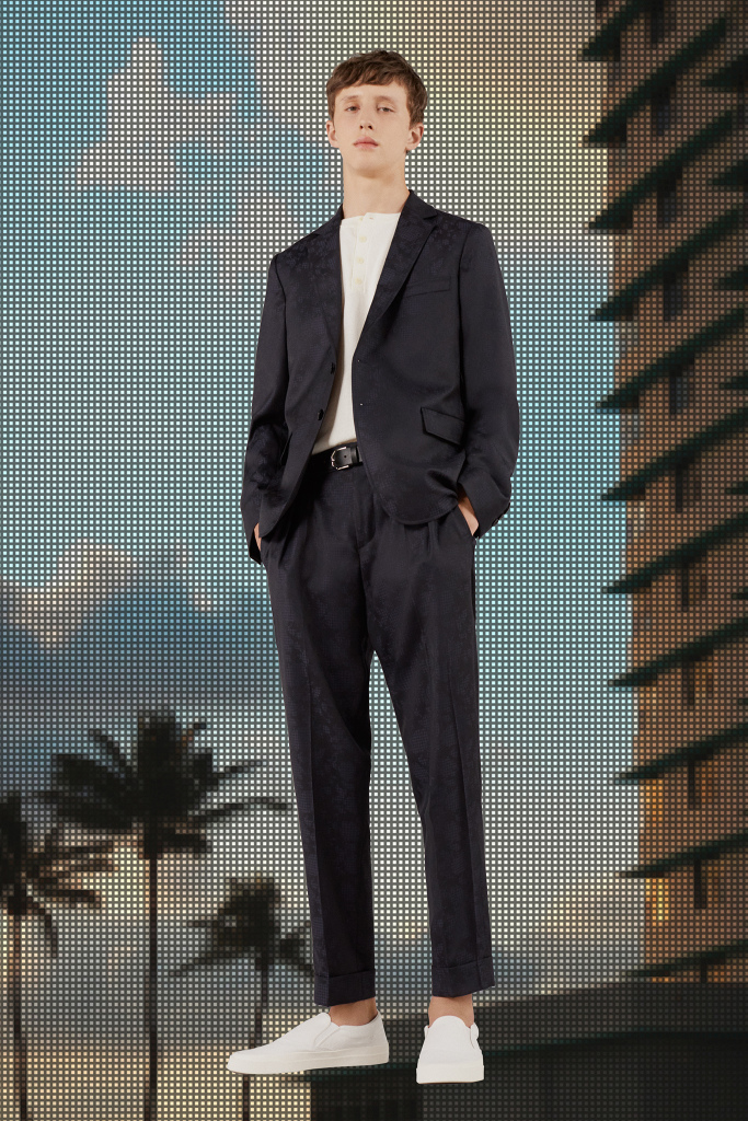 Maison Kitsuné designers Gildas Loaëc and Masaya Kuroki took a cue from the U.S. once again for their spring collection. But rather than focusing on American popular culture like they did for fall, the irreverent duo envisioned a made-up place, called “Romance.” It’s their ideal fusion of Los Angeles and Miami, with everything that imaginary mix conjures up. Hot weather? Check. Easy living? Check. Surfing culture? Check. Speedboats? Check.