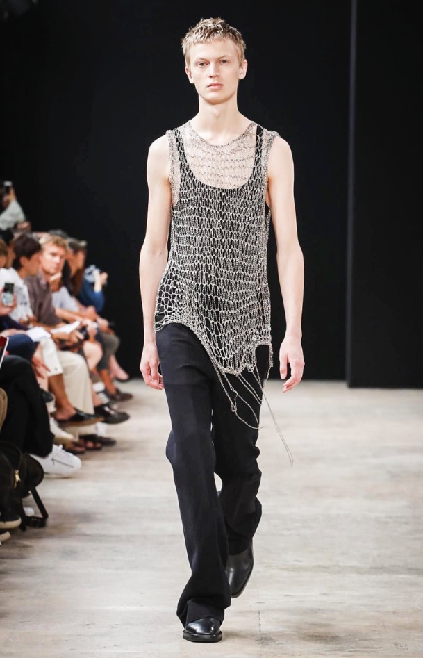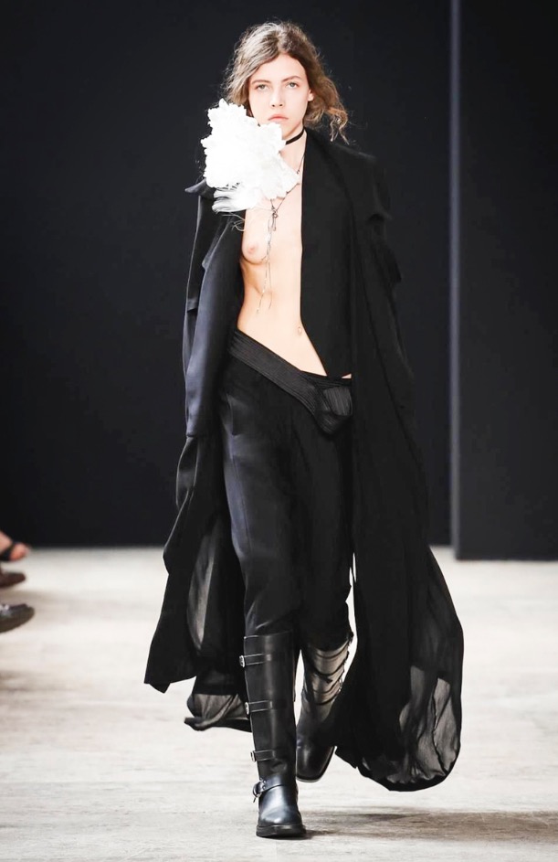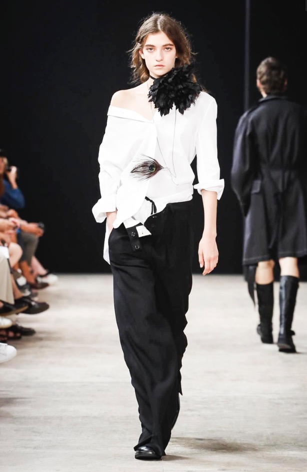 Once again, the powerful black and white binomial takes over collection of Ann Demeulemeester, in a proposal in which the slight touches of androgynia conquer straight cut looks with transparencies that dynamize in texture each outfit, Shaping the spirit of freedom through light fabrics.