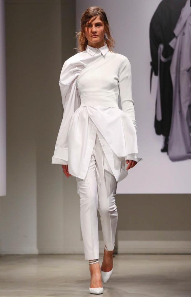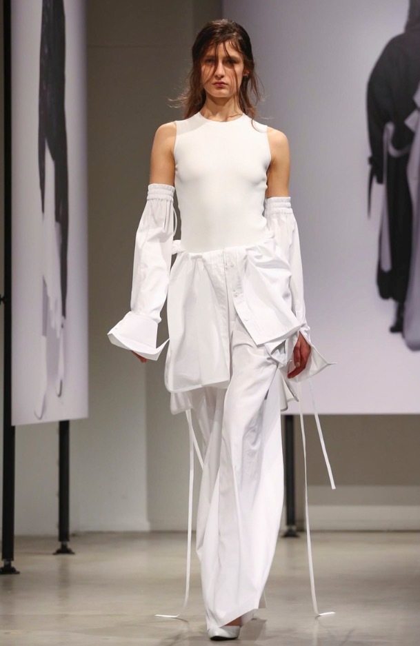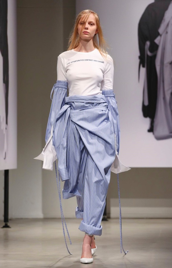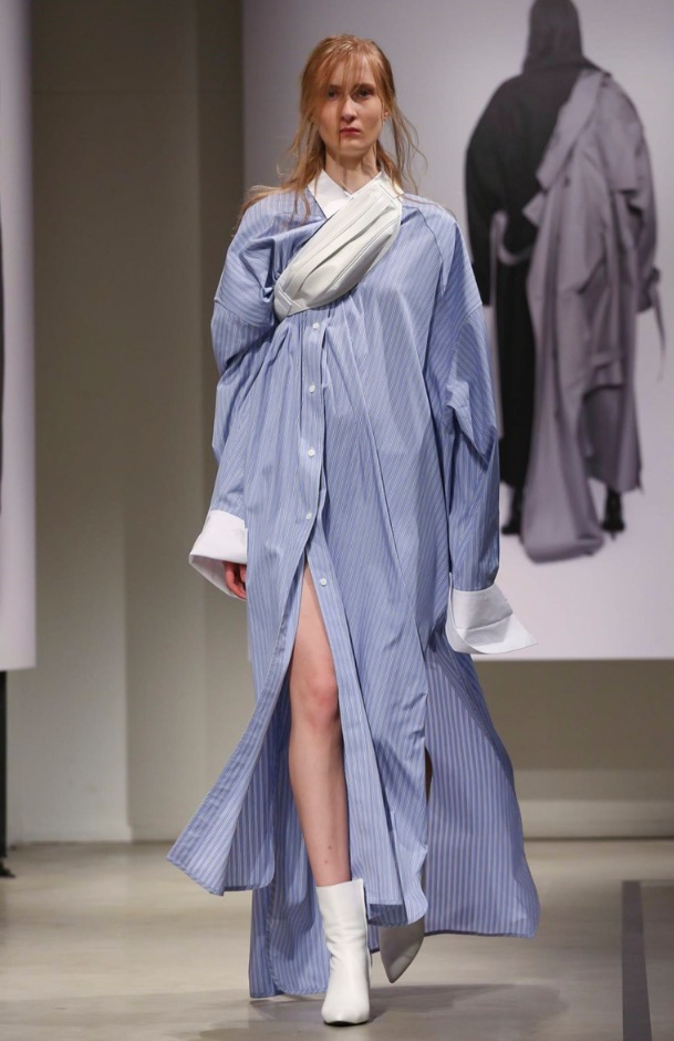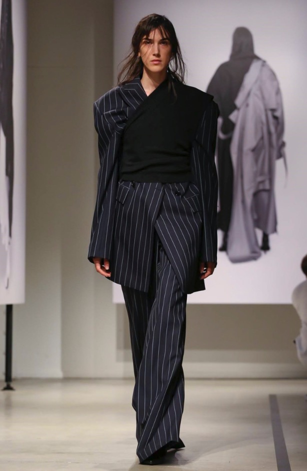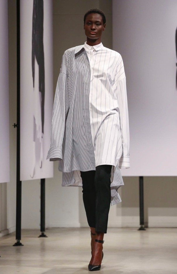Having a black and white presences in the Spring/Sumer 2018 collection of Juun J. , for its parade in Paris, the maximum deconstruction of the garments finds a new way of translating shirt in oversize items that show diplomatic stripes shaped In modernist looks that play with the male silhouette.
