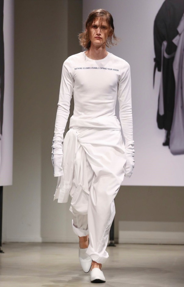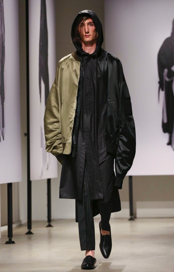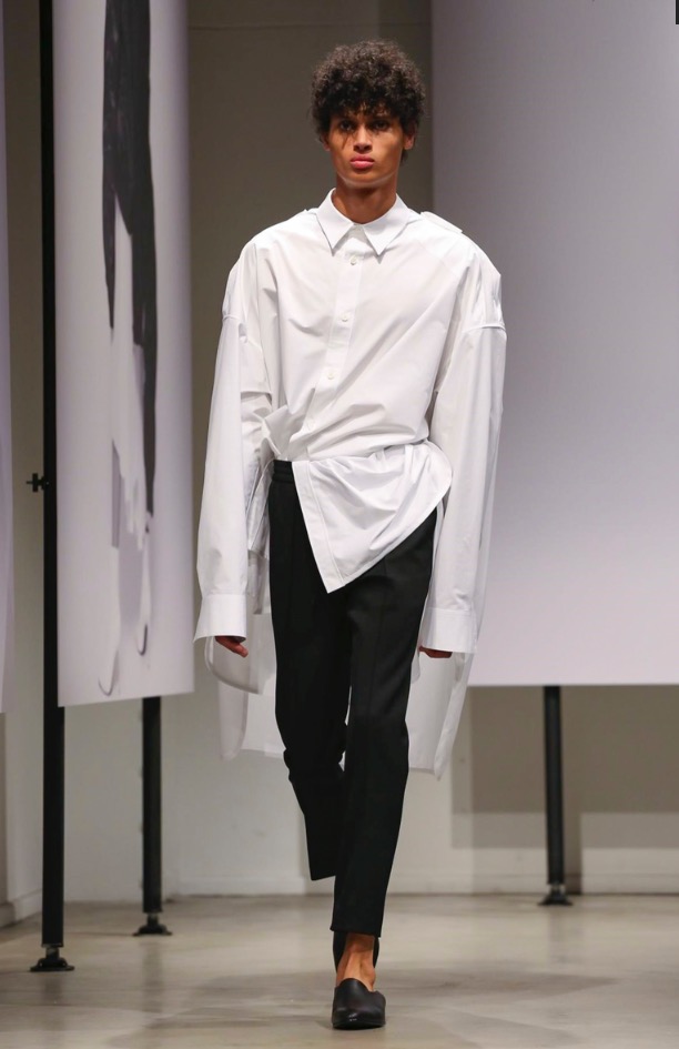 The boys were not neglected. Juun.J kept the classics billowing, oversized, half-way on and off.