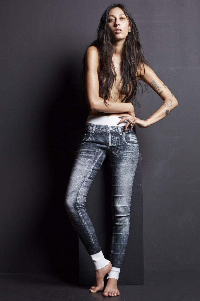 Fashion designer Stefan Cooke also lent his craft to Faith Connexion this season, with trompe l’oeil pieces. Case in point: What seemed like a pair of denim jeans was actually a digitally manipulated image of a pair jeans transposed on to elastic.
