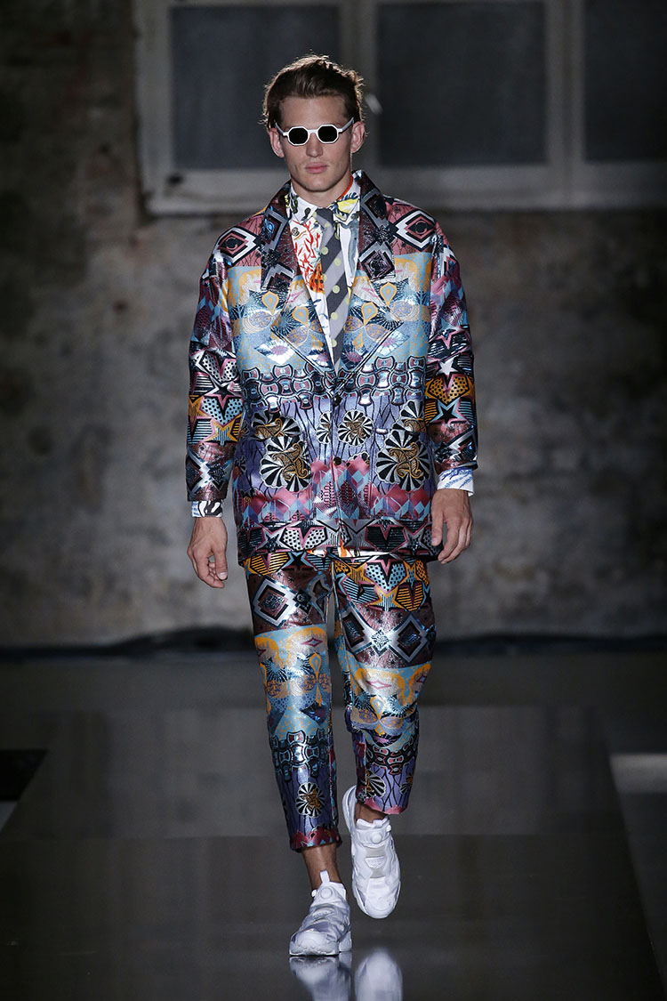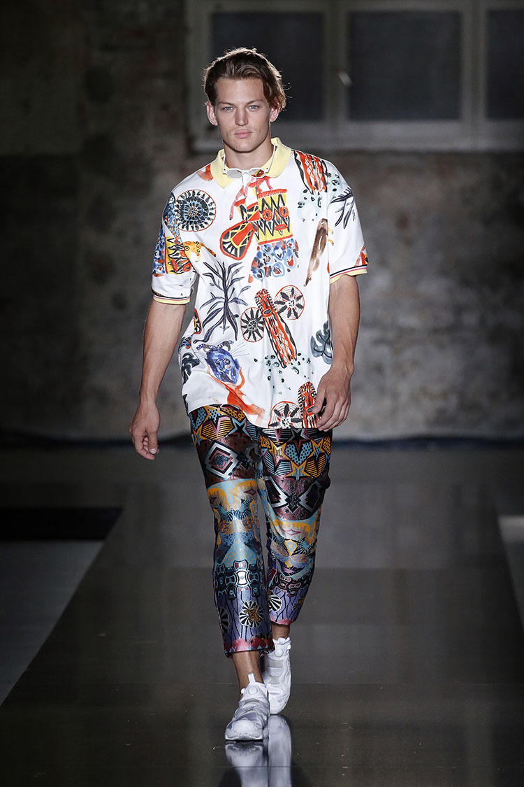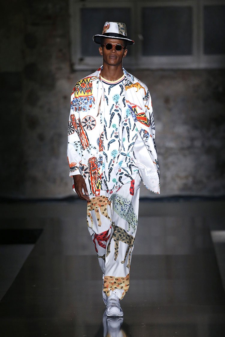 It’s Sunday morning, it’s hot and the atmosphere is dry. It’s a day of getting dressed well: wearing a jacket, tie and hat. “The Jungle Brothers SS2018” is the new collection of designer Krizia Robustella, inspired by the sapeurs of the Congo. Dandis of the 21st century, in which elegance mixes with the sport and the street. The prints, by the illustrator Fatimorri, along with fabrics and textures, create mixtures that seem impossible. Class, humor and hip-hop in this collection full of color, that transports us to other cultures and countries.