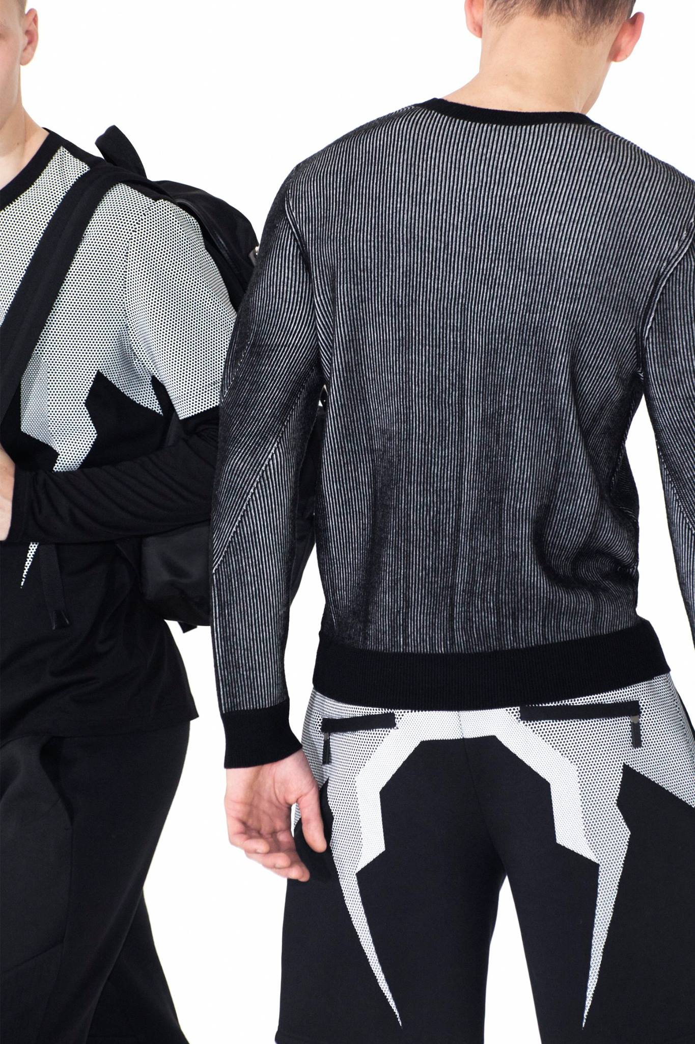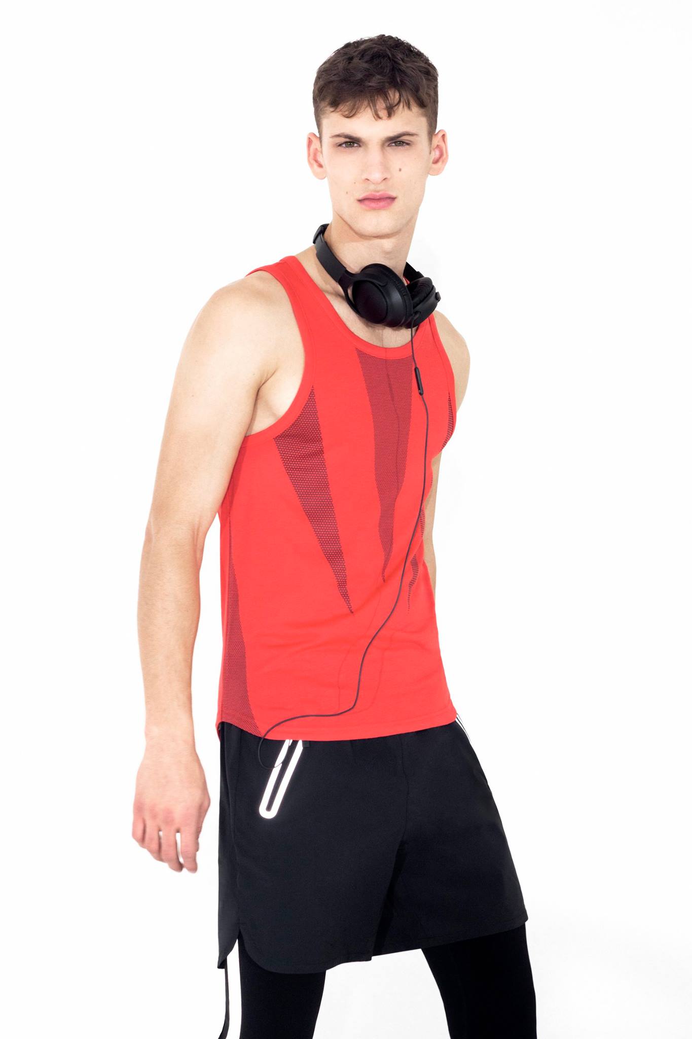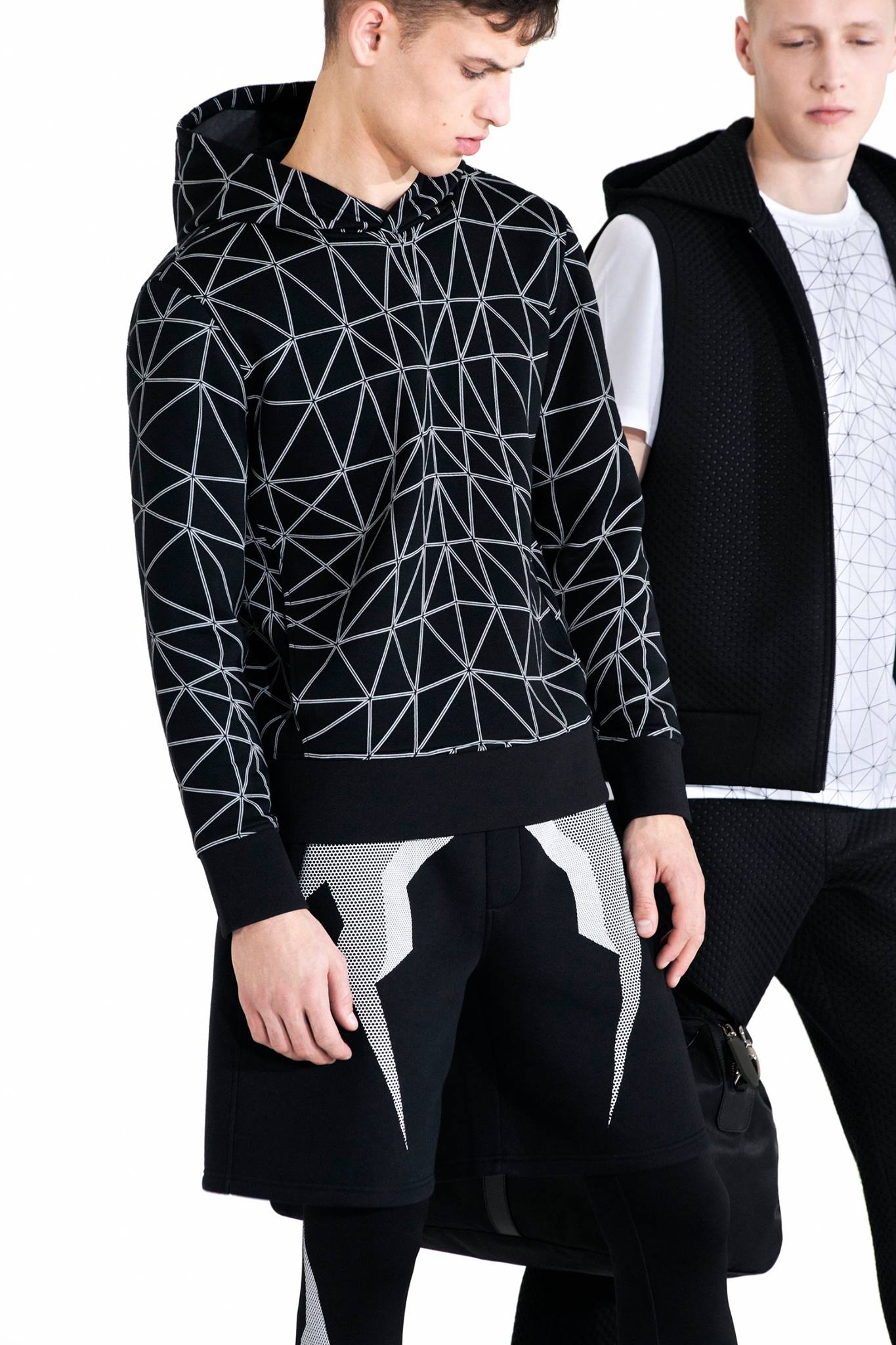 Sartorial pinstripes inspire multi-stitched sweatshirts, while intricate ribs inlays add a tactile interest to zip-up tops. All over printed tees and vests feature ergonomic flat seams and a three-dimensional “net” motif, striking a balance of comfort and style.