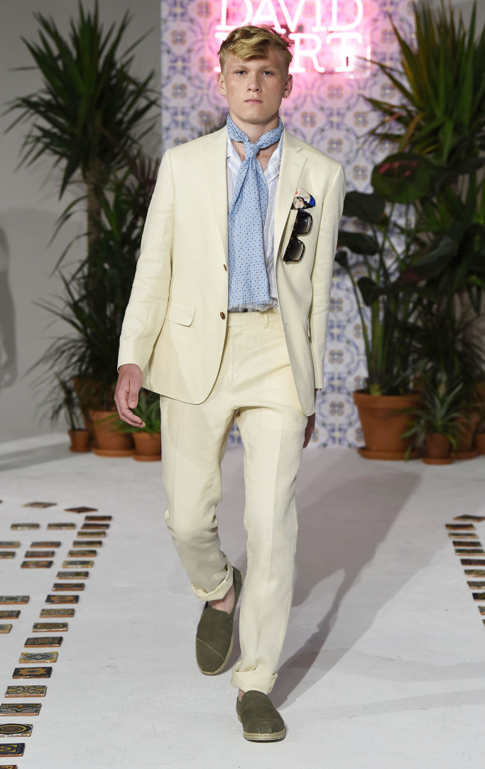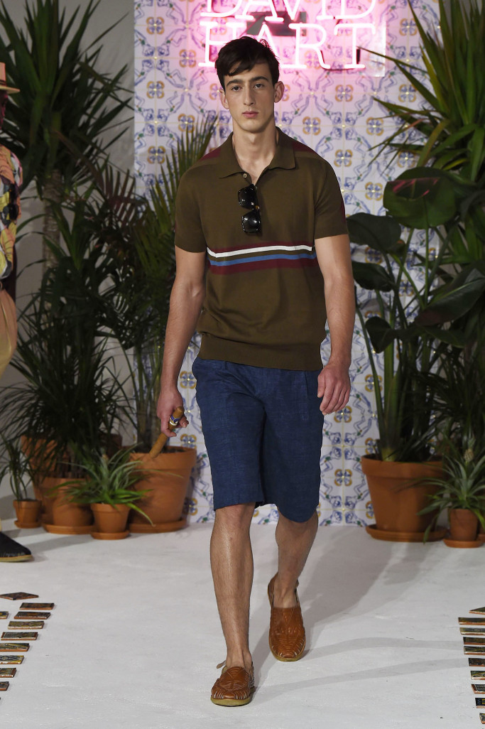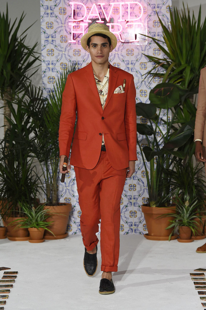 David Hart didn’t stray too far out of his wheelhouse this season, offering up a colorful, retro-themed collection of tailored clothing and sportswear. This time around the line was inspired by tourism to Cuba, as evidenced by the tropical-print camp shirts, boldly striped sport coats and knits and brightly hued suits.