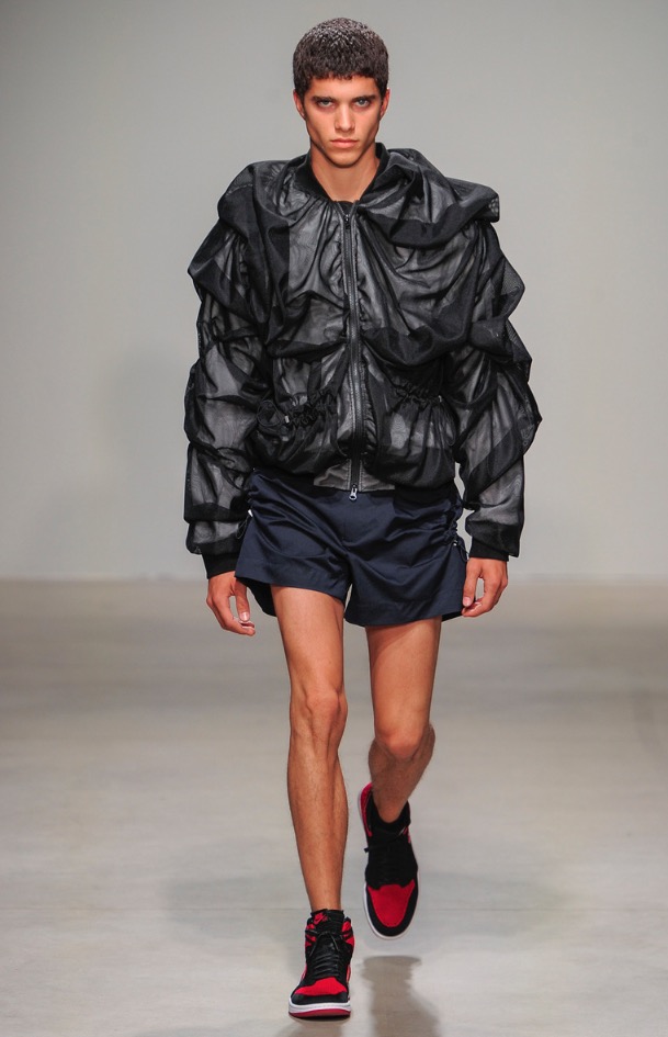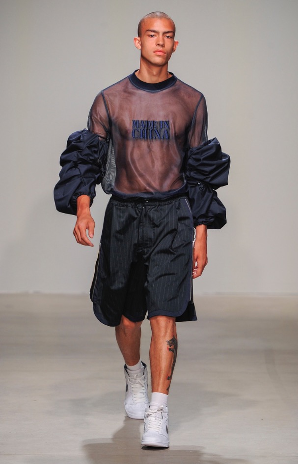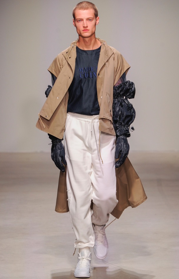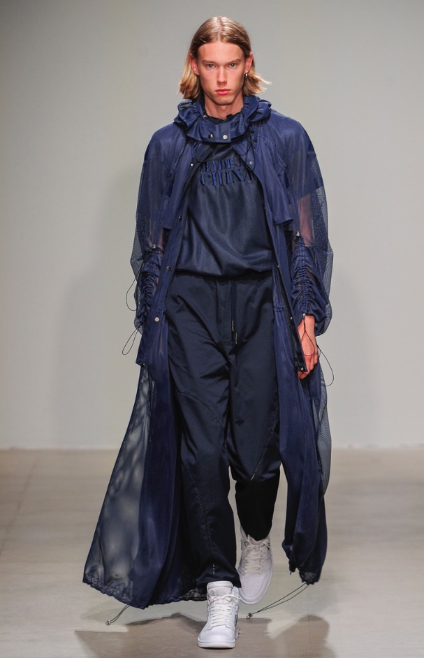 From China to London to New York City. Feng Chen Wang is a London based menswear brand and today presents her first runway fashion show at Skylight Clarkson Sq in New York City. The brand consists of a new profile form of menswear, combining function with an astute attention to details and aerodynamic aesthetic.
