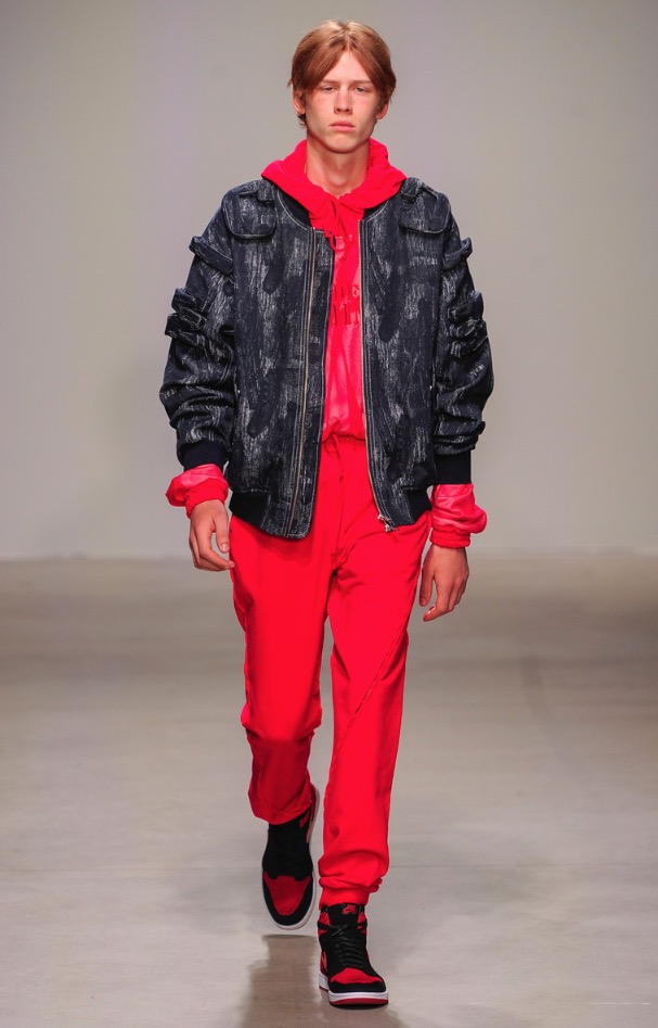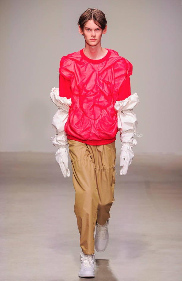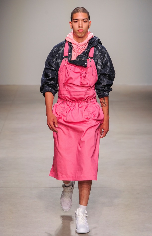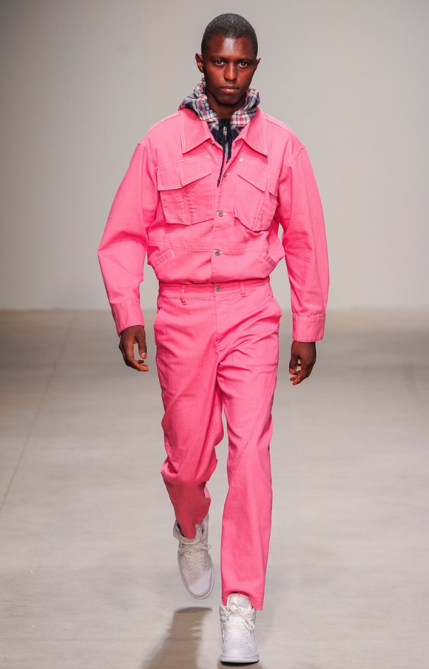 For NYFW we see a functional, dynamic, colorful and modern collection but minimalist and surreal as the new Chinese boys who dress in style and that fashion comes to New York City. Stealing the show: pink gloves, looks like thos gloves to fertilize cows. Pink can be a bit transgressive and confussing but is fashionable as hell.