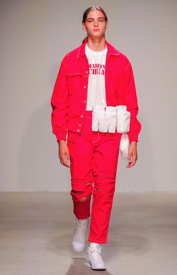 For NYFW we see a functional, dynamic, colorful and modern collection but minimalist and surreal as the new Chinese boys who dress in style and that fashion comes to New York City. Stealing the show: pink gloves, looks like thos gloves to fertilize cows. Pink can be a bit transgressive and confussing but is fashionable as hell.