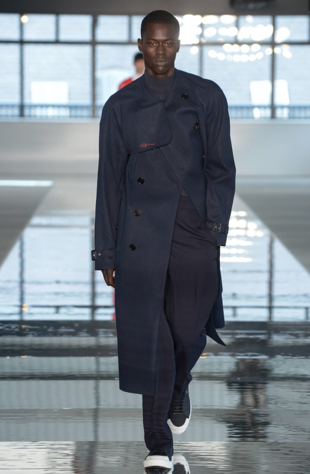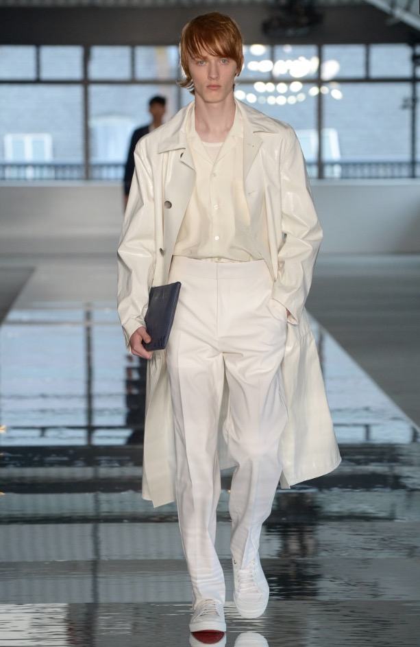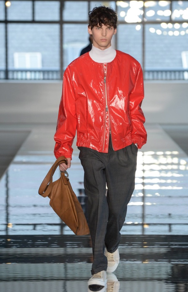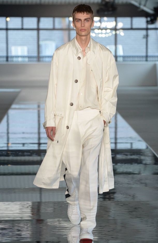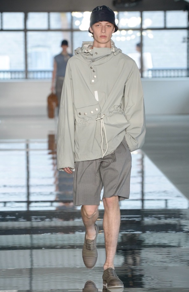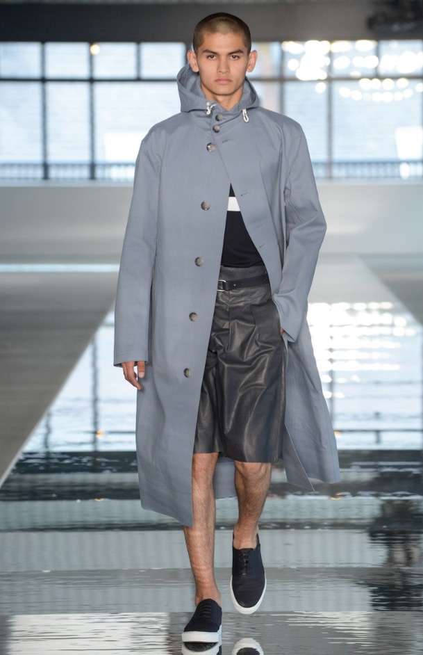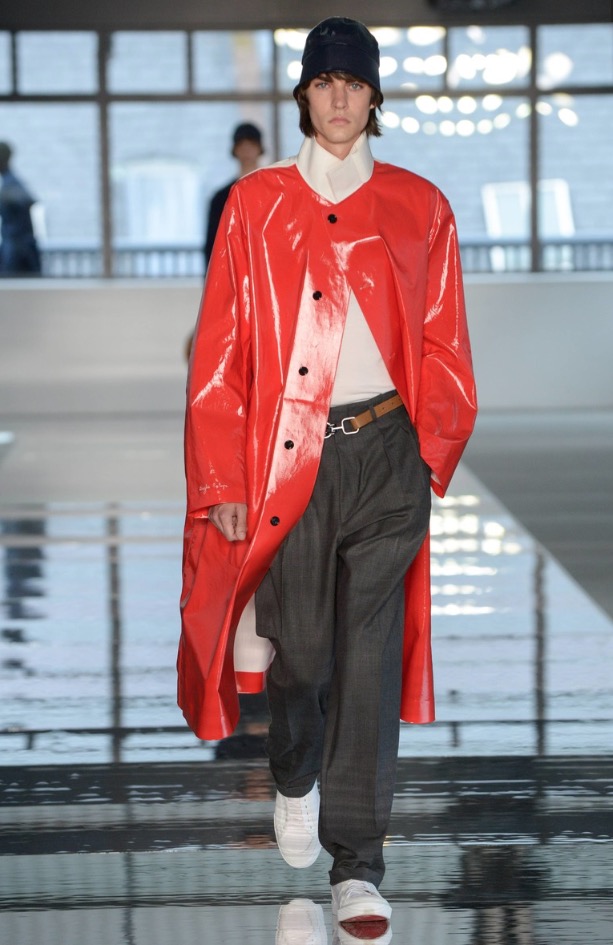 But most of the collection centered around fluid tailoring in paper-light trenchcoats and roomy shorts, including a standout bright red trenchcoat in technical nylon that could work as well on board a boat as on a New York street.