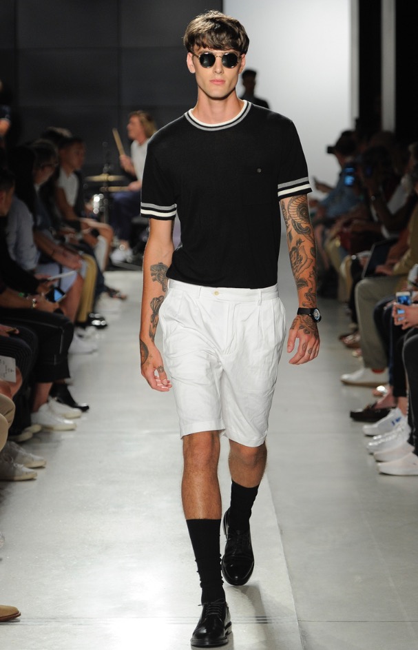 “It’s a mish-mash of different looks,” he said backstage before his show for New York Fashion Week: Men’s on Monday night. “Active, military, sartorial.” Even his father’s propensity to wear black socks with shorts — “which always annoyed me, but now I’m doing it, too” — made an appearance.