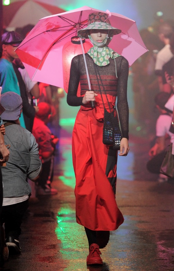 The designer created his own version of the iconic film by taking over an alley in Chinatown, complete with the overwhelming smell of fish wafting through the air and the ear-numbing rumble of subways overhead.