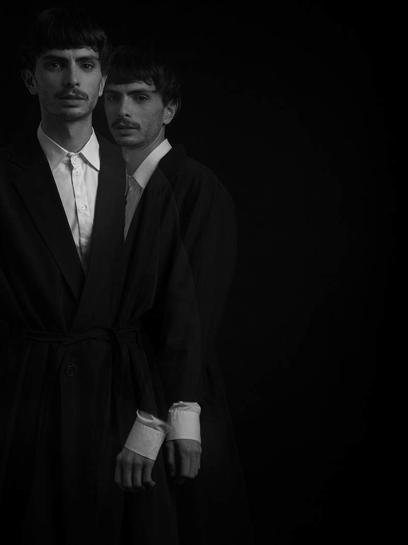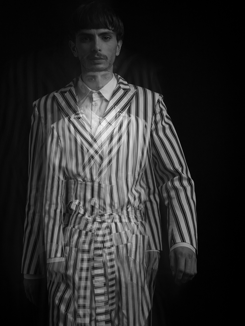The starting point for ELIRAN NARGASSI‘s F/W 2017-18 collection is the marvel & simplicity of the human anatomy. Tracing the contours of the human body, turning it into graphic lines symmetrically following the body, along the clavicle, the shoulders, following the arms and down to the legs, while keeping emphasis on the body’s center. The tracing assignment is done using the classic inner finishes such as contrast satin bindings, commonly used in traditional tailoring, but using them on the exterior of the garment.