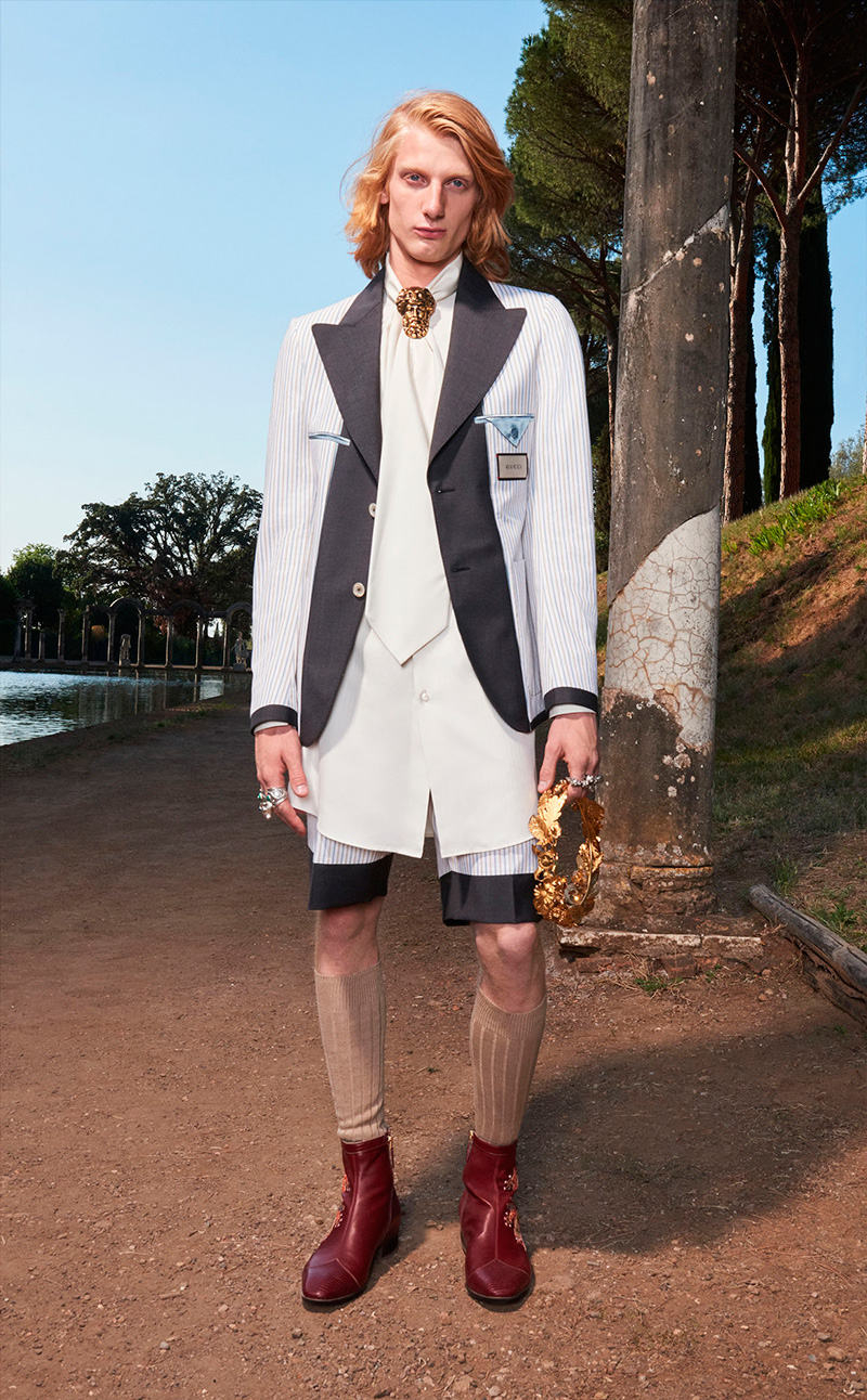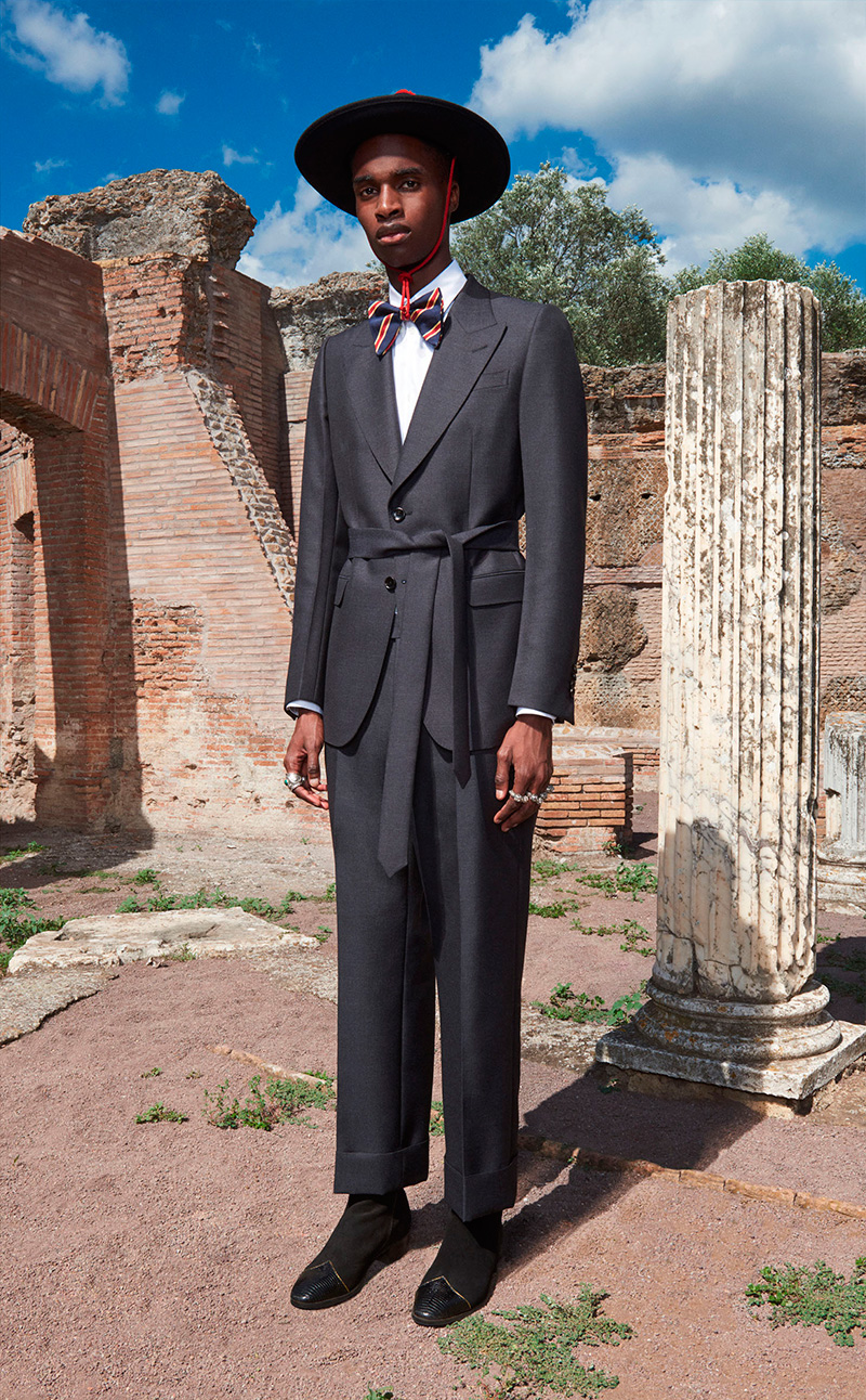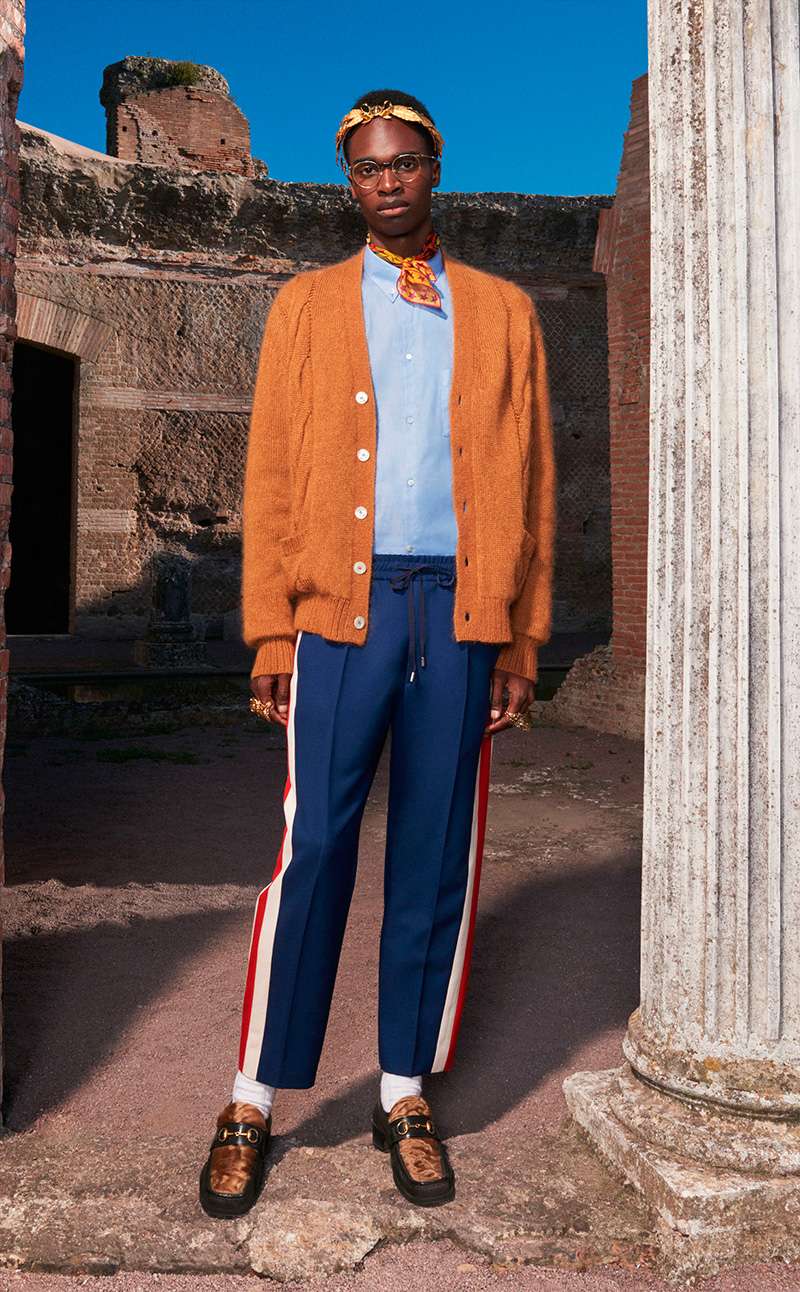 As an example we find perfect tailored looks that contrast with retro cut jeans, oversize sweaters, details with orient influences and colorful blocks of disparate shades in woven garments that make Michele a reference for the creators who make chaos their inspiration.