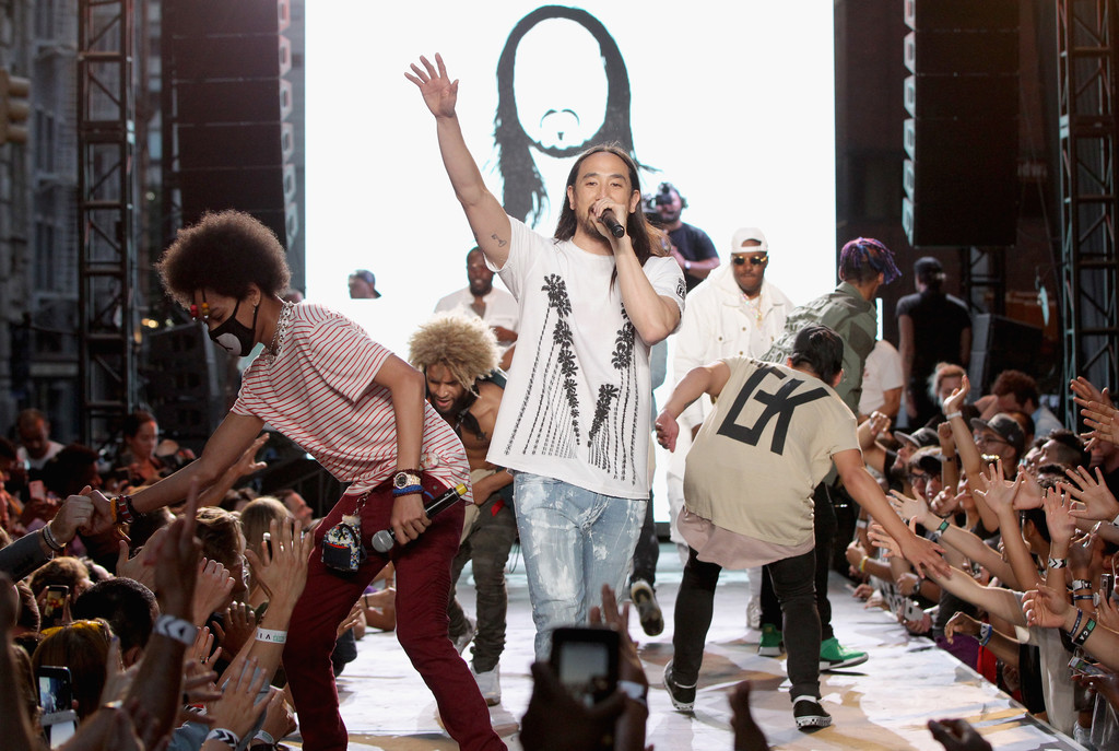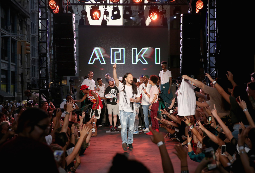 NICK REMSEN – “It’s been a busy day, man . . . one of those days,” said Steve Aoki—DJ, producer, designer—on the corner of East 4th and Broadway in New York last night. “But it’s been awesome. Finding music, fashion, and New York City all together—I love being able to do that.”