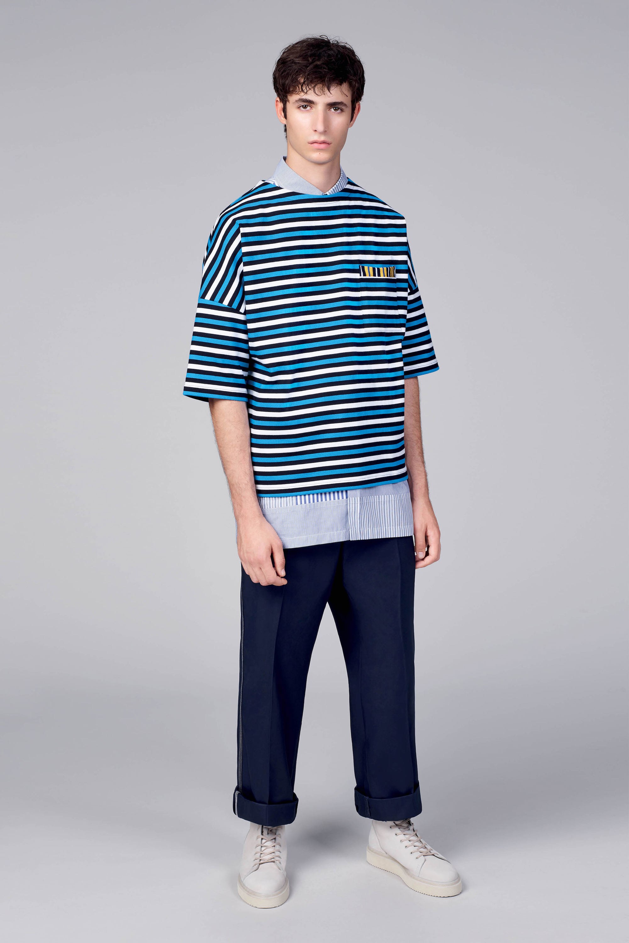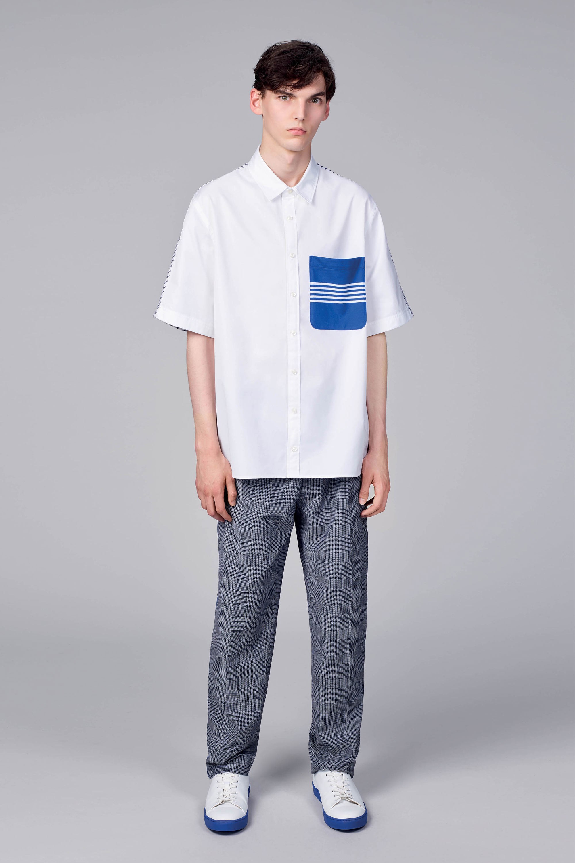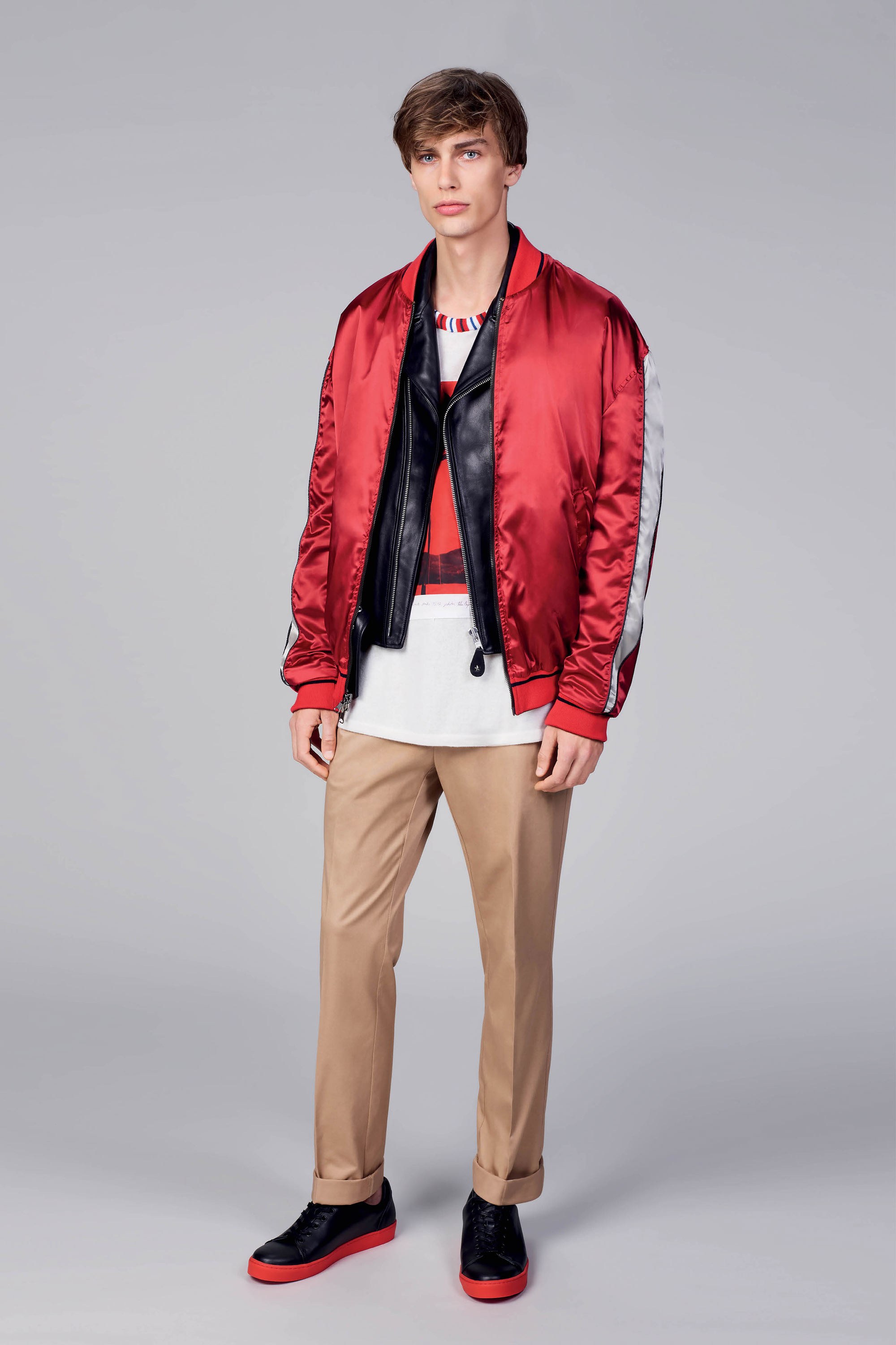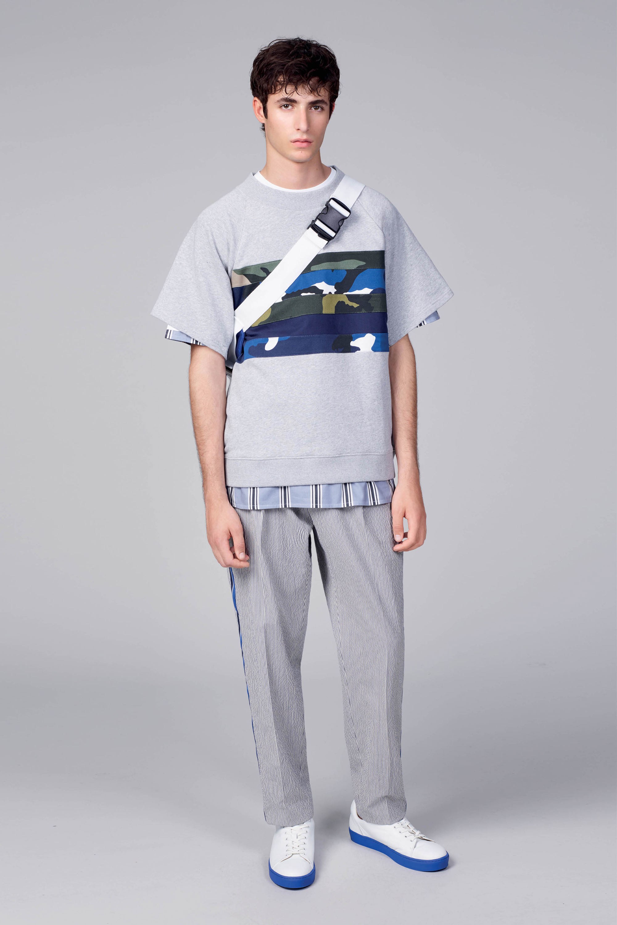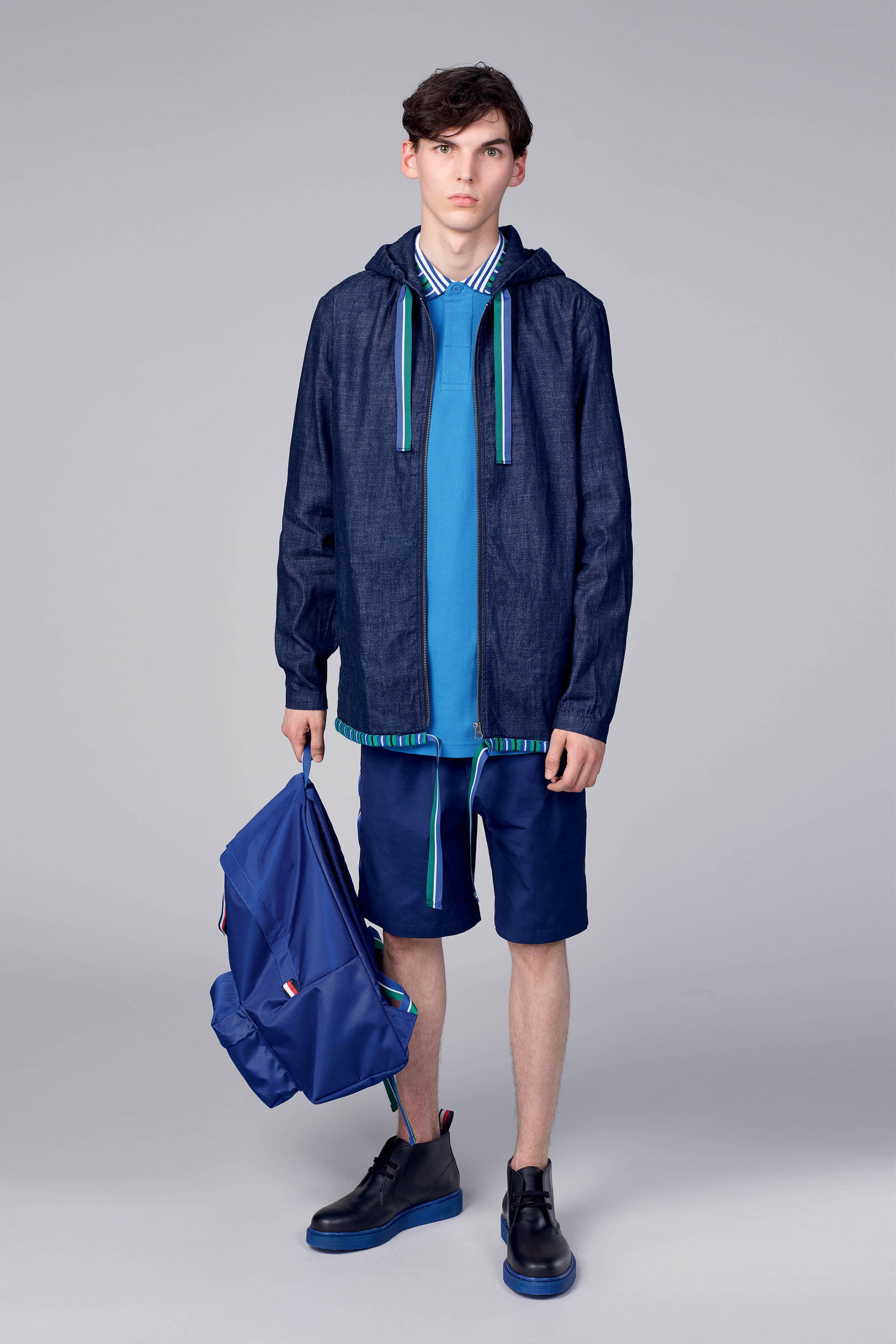 by NICOLE PHELPS Come September, Tommy Hilfiger will combine his men’s and women’s collections in one giant see-now-buy-now roadshow. The location will be London, with potential stops further east in Europe and even farther flung in future seasons. But Hilfiger’s been one of the great exporters of the American dream since his earliest days in the business. The men’s collection he showed at Pitti Uomo fits the profile. There was a loose reinterpretation of Old Glory on a fuzzy sweater. Bigger picture, team Hilfiger used camouflage, patch-working it on rugged nylon shirts and tees that look like they could do double-duty as rainproof outerwear. To be sure, there were also riffs on the red, white, and blue rugbies that count as his first signature—sans logos, though, which looks like a missed opportunity given that they are absolutely everywhere at the moment, and the company’s long history of using them.