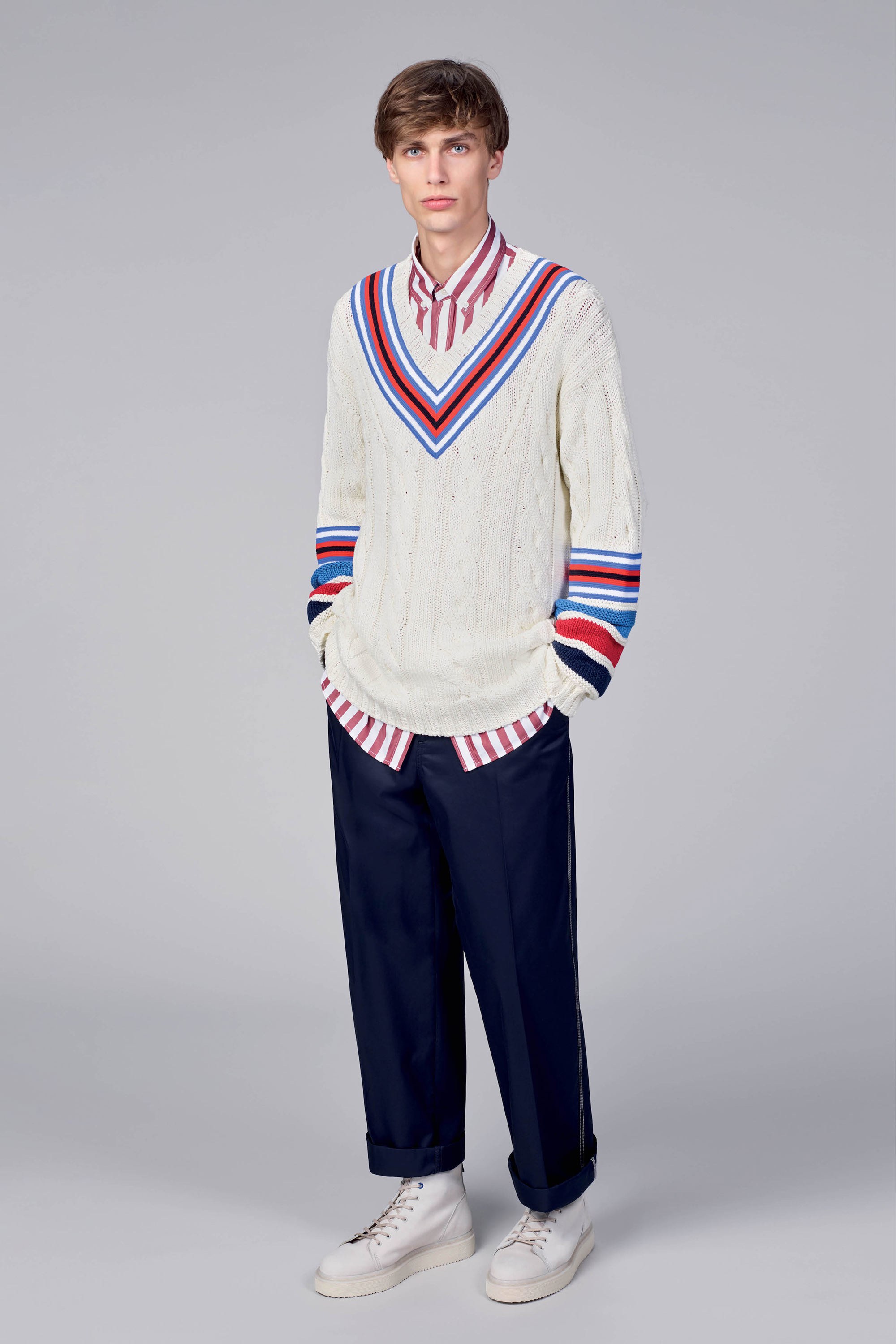 Beyond all-American tropes and brand signatures, the development here was in keeping with the trend seen elsewhere on the men’s runways for bigger, baggier pants. Ask a retailer and they’ll tell you: menswear is experiencing an upsurge, and American and international brands are reworking the look Hilfiger put his stamp on back in the day. Uniting the guys with Gigi and co. in London could kick this collection into gear, and renew its relevance with a crowd that is currently turned on to those other labels.