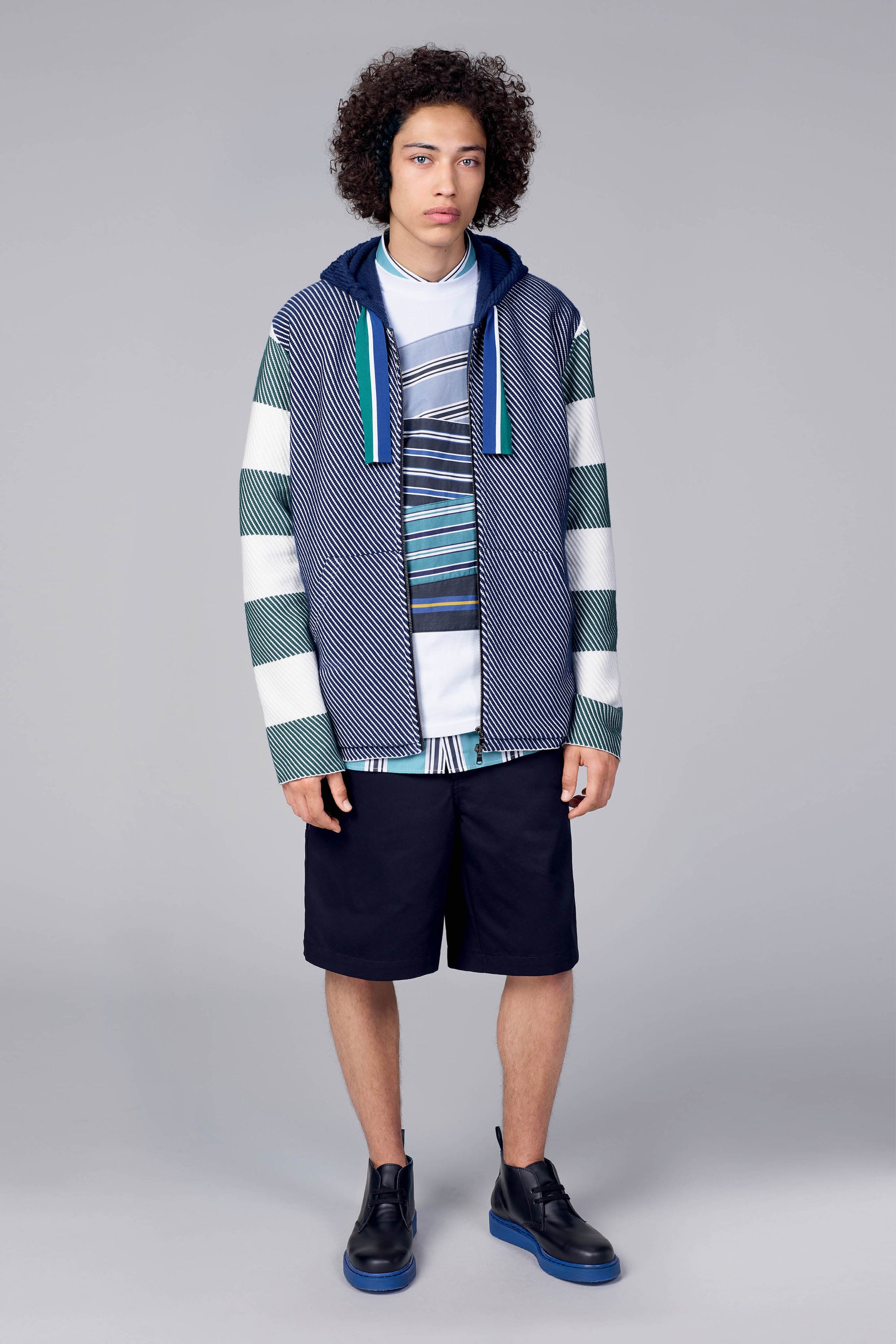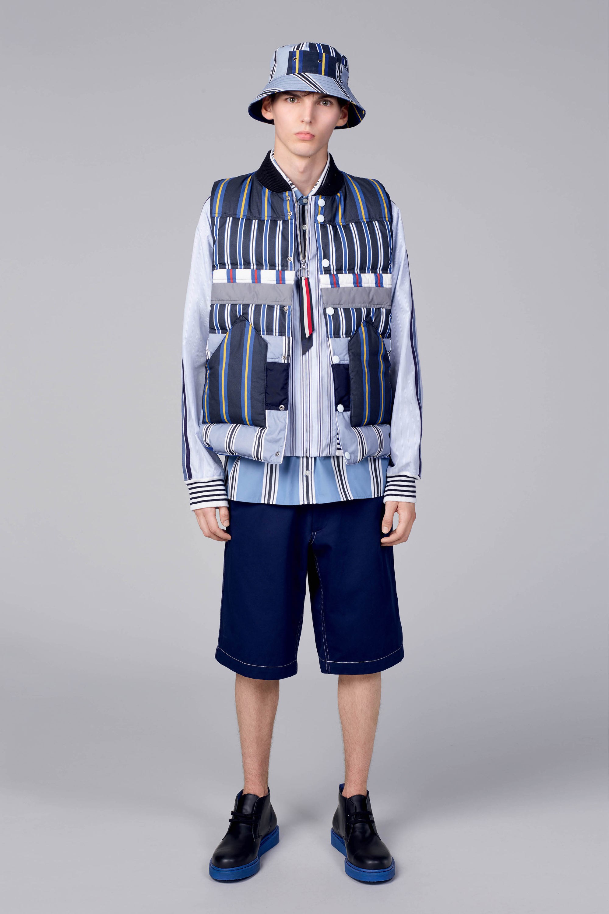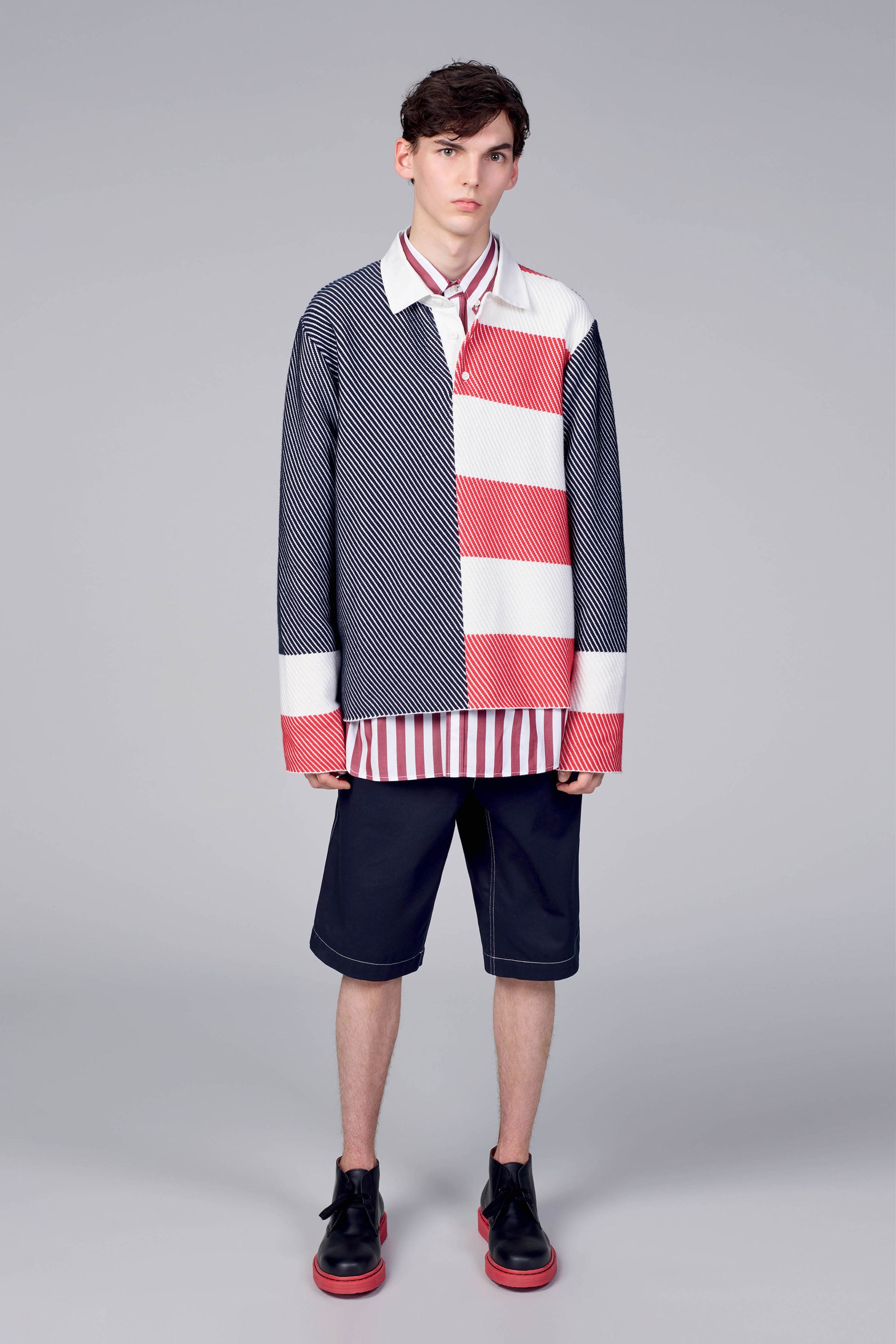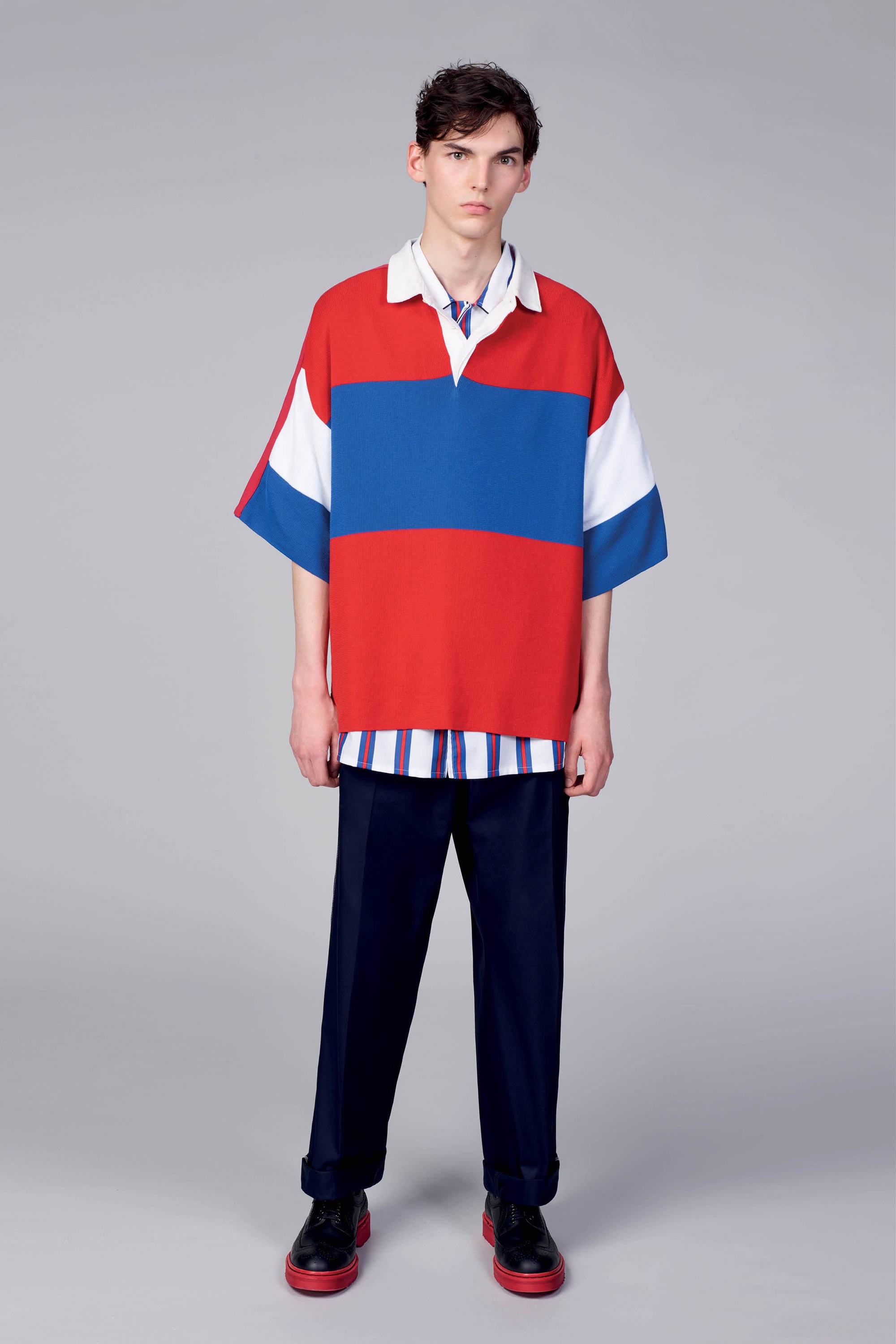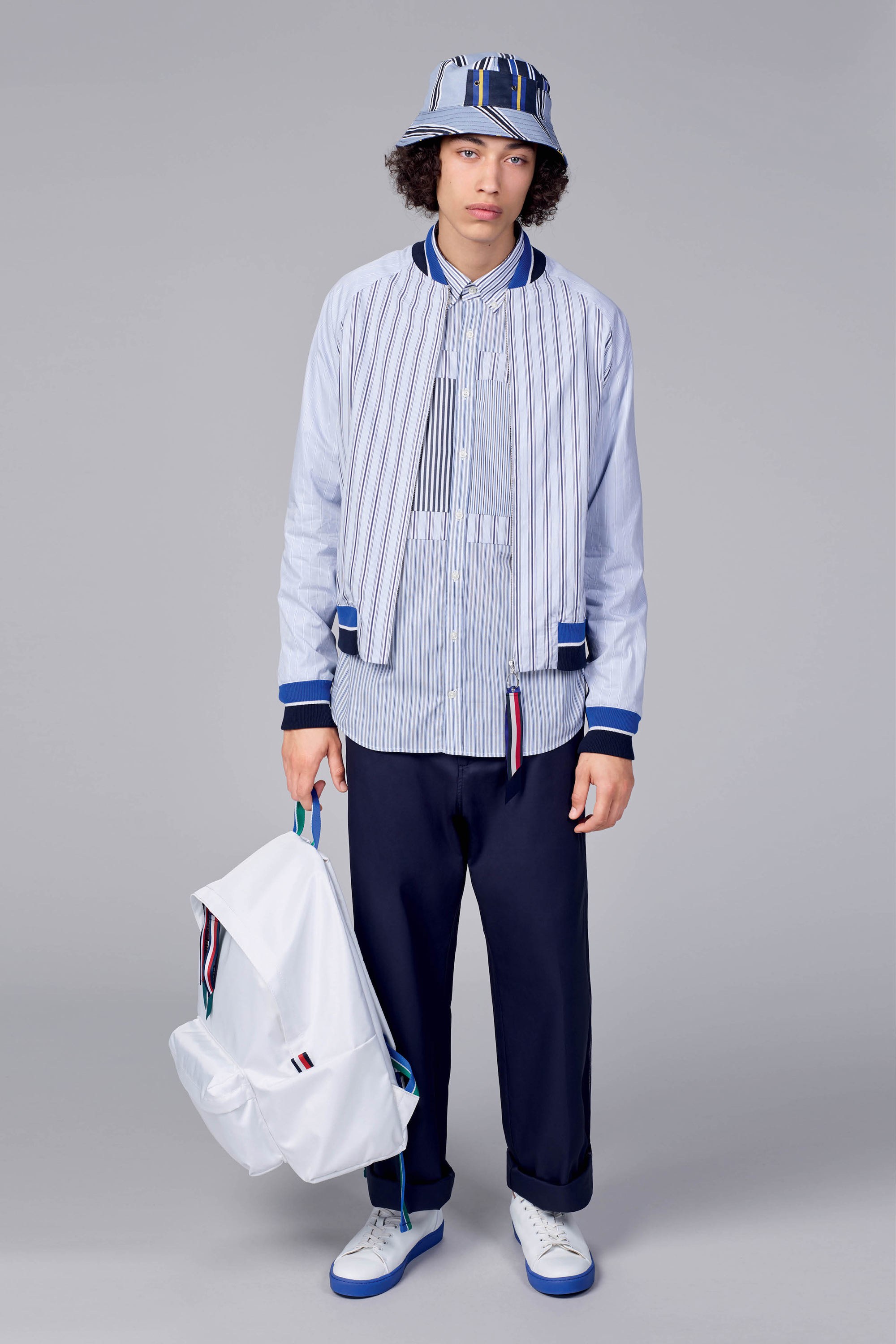 by NICOLE PHELPS Come September, Tommy Hilfiger will combine his men’s and women’s collections in one giant see-now-buy-now roadshow. The location will be London, with potential stops further east in Europe and even farther flung in future seasons. But Hilfiger’s been one of the great exporters of the American dream since his earliest days in the business. The men’s collection he showed at Pitti Uomo fits the profile. There was a loose reinterpretation of Old Glory on a fuzzy sweater. Bigger picture, team Hilfiger used camouflage, patch-working it on rugged nylon shirts and tees that look like they could do double-duty as rainproof outerwear. To be sure, there were also riffs on the red, white, and blue rugbies that count as his first signature—sans logos, though, which looks like a missed opportunity given that they are absolutely everywhere at the moment, and the company’s long history of using them.