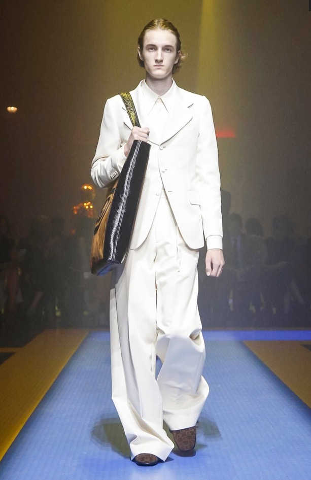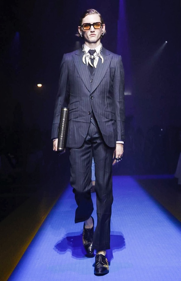 Michele has been intensely busy this year, to put it mildly. The exponential growth of Gucci is a phenomenon of our times in fashion; a game changer which is the envy of all luxury competitors. If there’s melancholy, dissonance, and noise in the way Michele put this collection over, well, maybe that’s an accurate reflection of the way the contemporary world feels, too. On the other hand, something else he said in passing reveals exactly the detail-mindedness that has proved such a raging success in every store and duty-free Gucci shop on planet Earth: “I’m trying to push the fact that fashion is full of little things.”