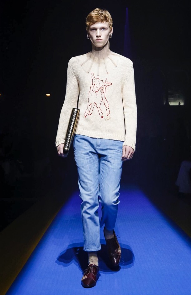 Michele has been intensely busy this year, to put it mildly. The exponential growth of Gucci is a phenomenon of our times in fashion; a game changer which is the envy of all luxury competitors. If there’s melancholy, dissonance, and noise in the way Michele put this collection over, well, maybe that’s an accurate reflection of the way the contemporary world feels, too. On the other hand, something else he said in passing reveals exactly the detail-mindedness that has proved such a raging success in every store and duty-free Gucci shop on planet Earth: “I’m trying to push the fact that fashion is full of little things.”