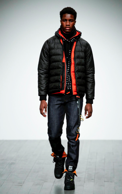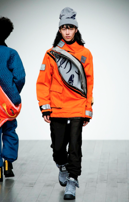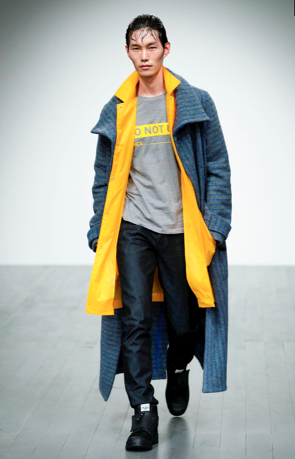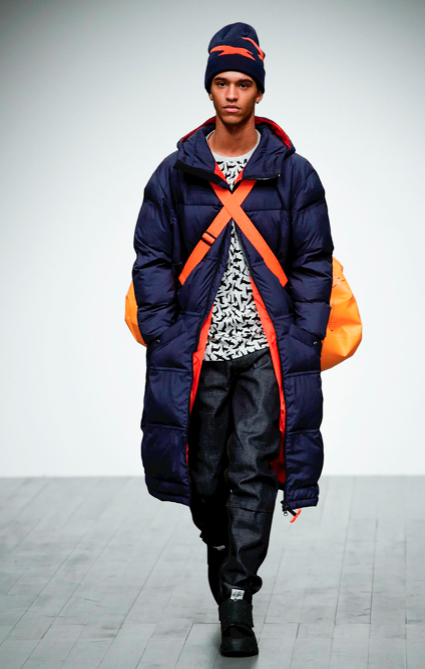Combining the colors of sportswear with items for performance, Christopher Raeburn presents his winter collection at the fashion week in London, where the flagrant yellow color is seen to shine in padded coats that make impeccable layered look.