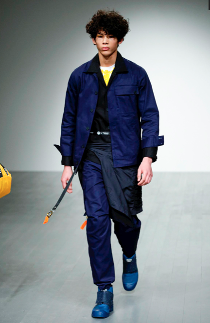 Combining the colors of sportswear with items for performance, Christopher Raeburn presents his winter collection at the fashion week in London, where the flagrant yellow color is seen to shine in padded coats that make impeccable layered look.
