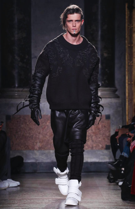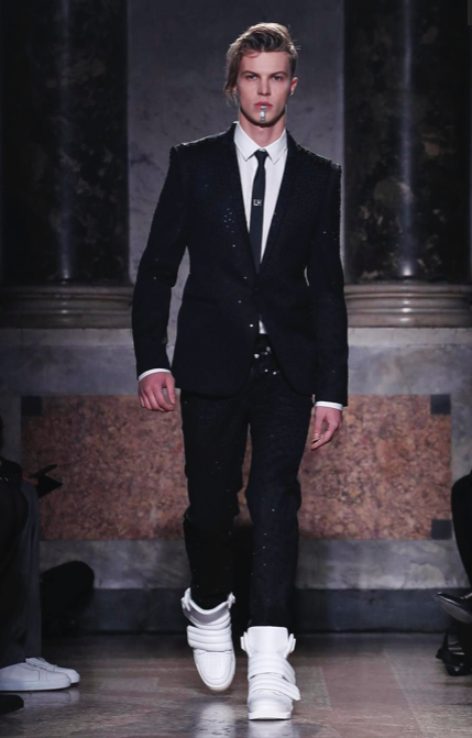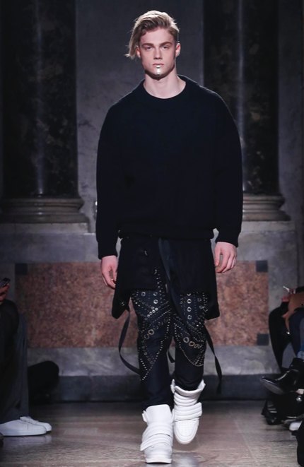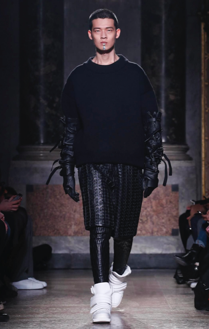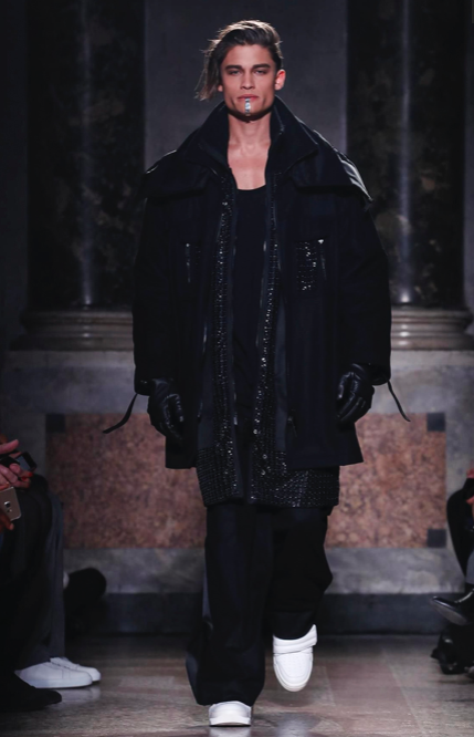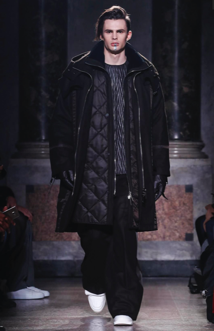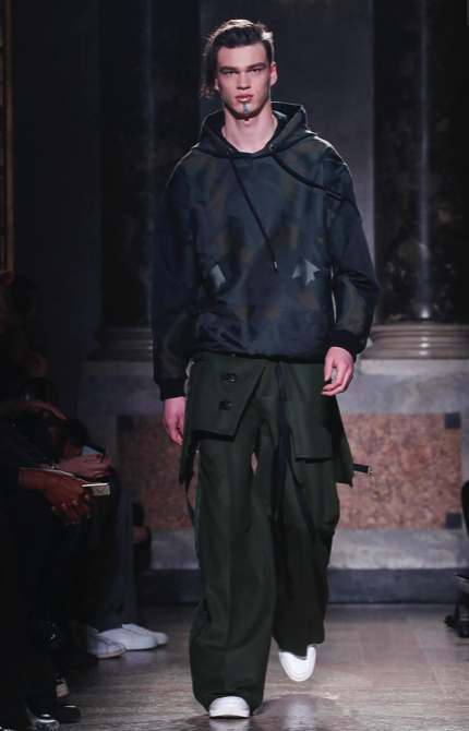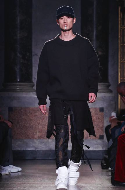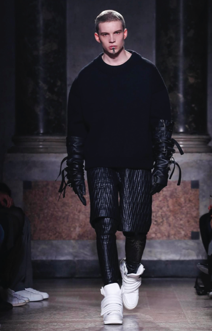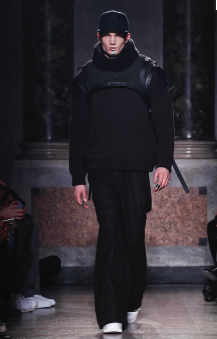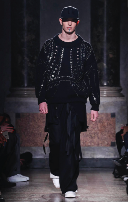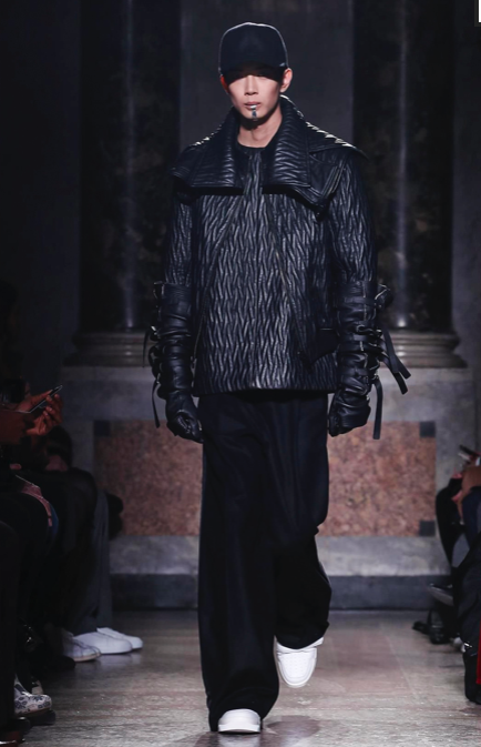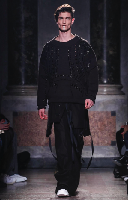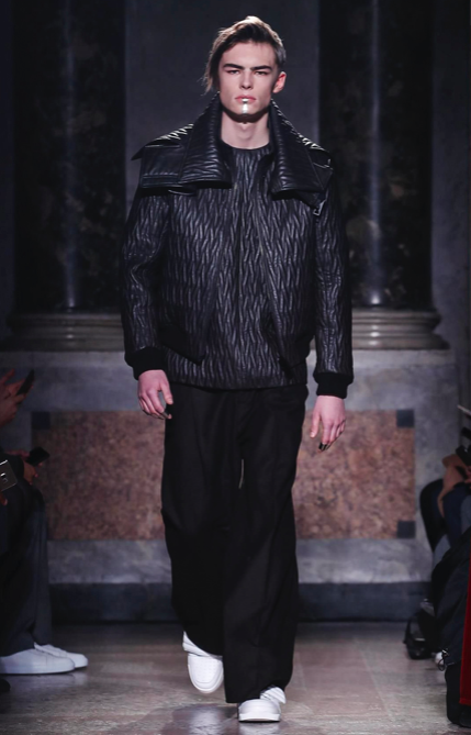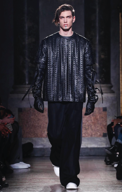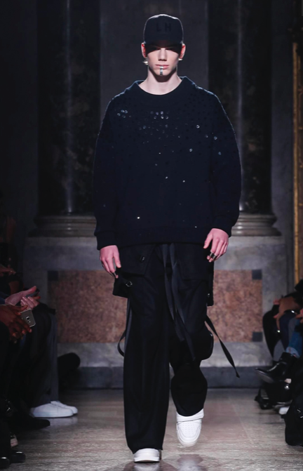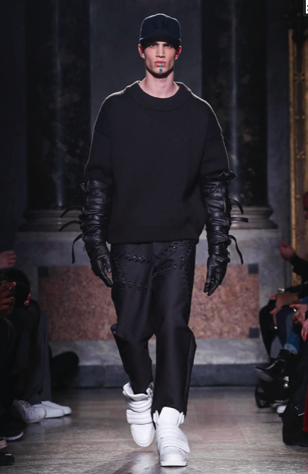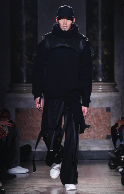 Making black the source of inspiration, Les Hommes presents a monochromatic winter collection at Milan Fashion Week, with looks that opt for volume in wide leg pants and padded jackets, framing an urban contrast with tennis on white color, making the panels of some garments the focal details of their designs.