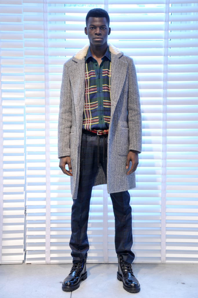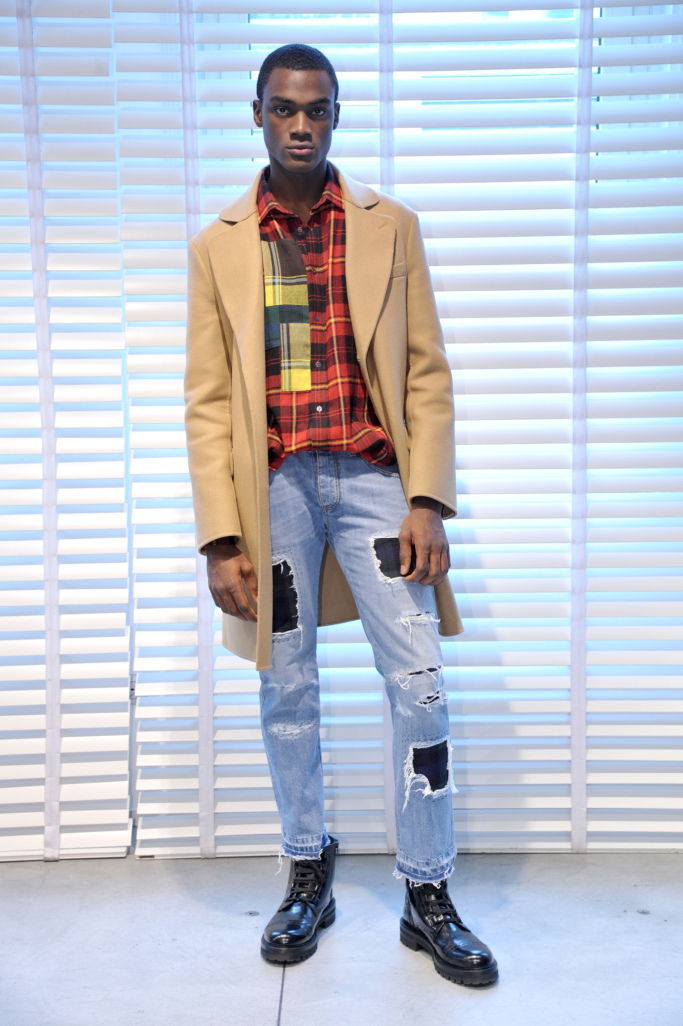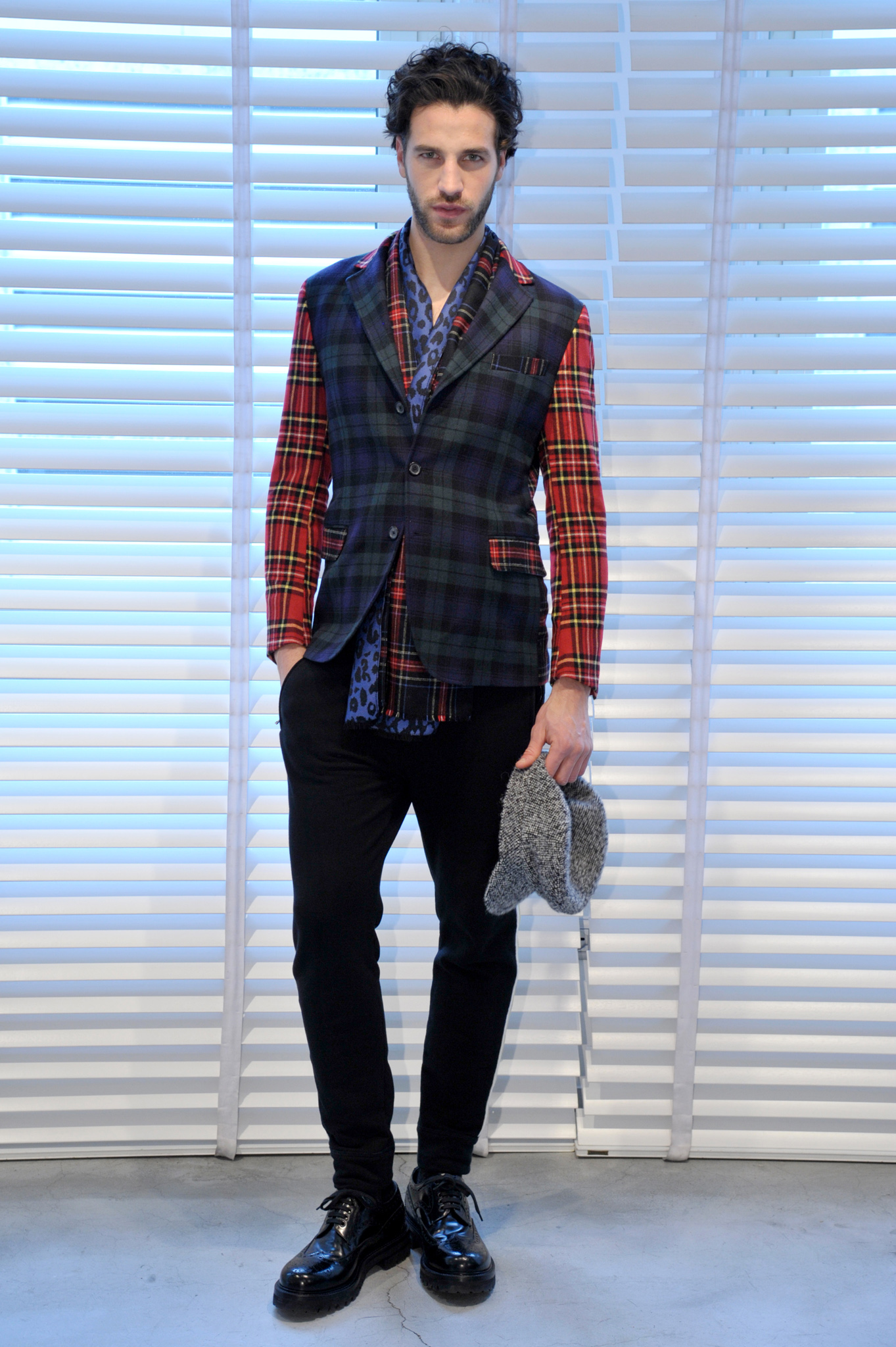 “Rock royal” — that is how Ermanno Scervino summed up his men’s collection for fall. To be sure, tartan “inspired by London and not Great Britain,” said the designer, took center stage, but was revisited, worked in patchwork patterns, embellished with cross-stitching and juxtaposed with animal prints in contrasting colors. Destroyed denim pants also had tartan patchwork details. “There is a rebellious streak that runs through the collection,” said Scervino.