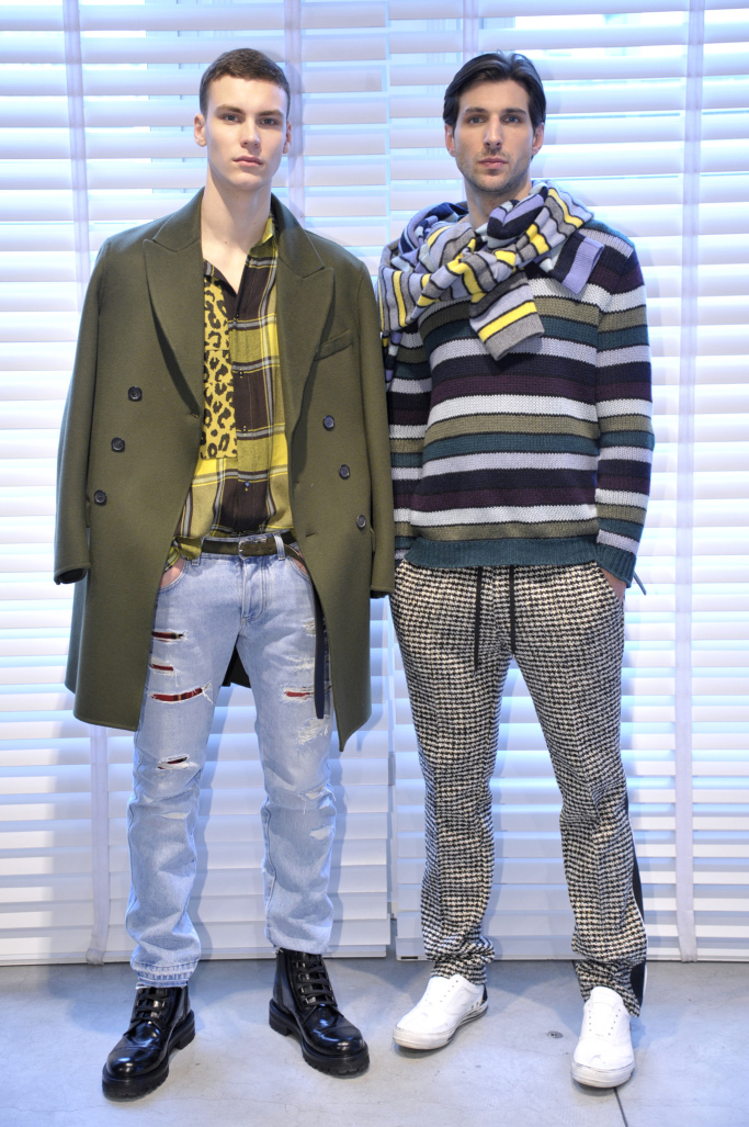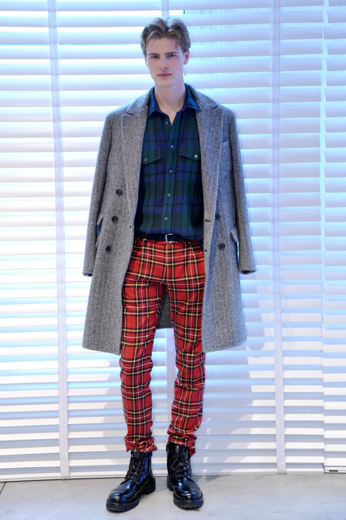 “Rock royal” — that is how Ermanno Scervino summed up his men’s collection for fall. To be sure, tartan “inspired by London and not Great Britain,” said the designer, took center stage, but was revisited, worked in patchwork patterns, embellished with cross-stitching and juxtaposed with animal prints in contrasting colors. Destroyed denim pants also had tartan patchwork details. “There is a rebellious streak that runs through the collection,” said Scervino.