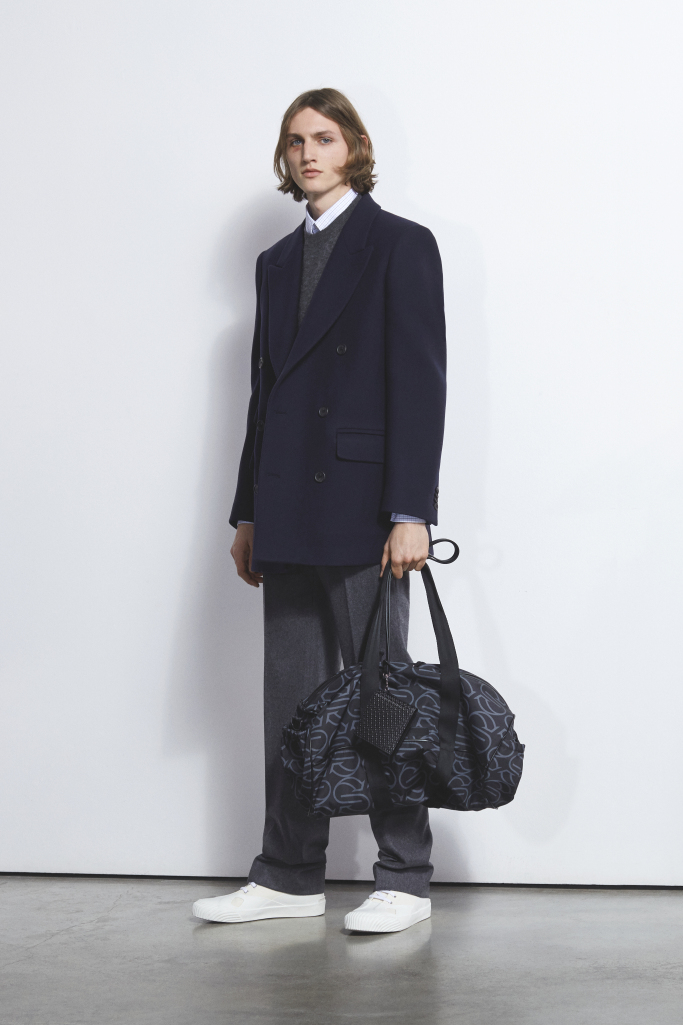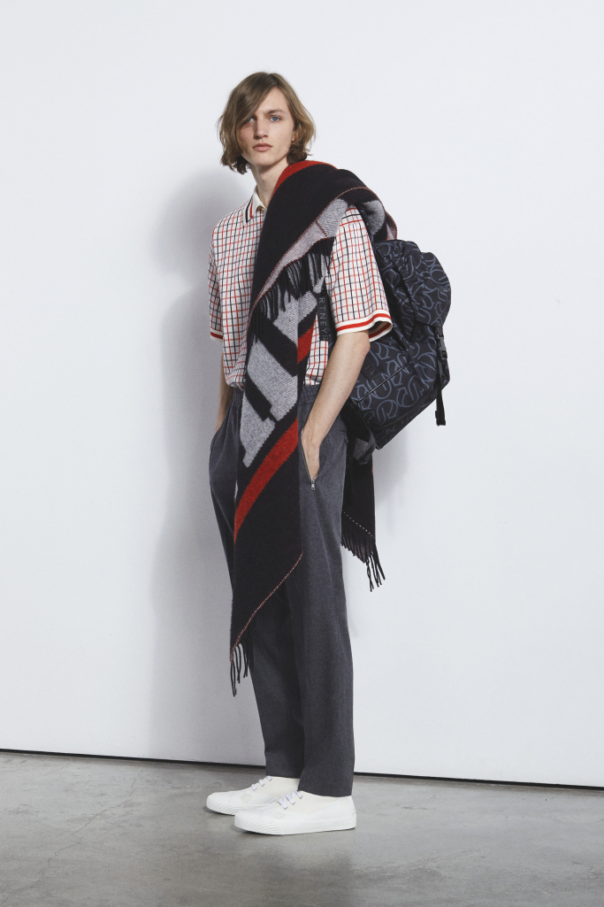 Both collections also featured zany, graphic pieces in red, black, and white, like zigzag knits and silks, and coats with enormously scaled words woven into the fabric. Elsewhere, a set of deconstructed lace-inset slip dresses in sherbet hues telegraphed a with-the-band dreaminess, while the guys on the opposite side of the stage sported tailoring with a Fab Four feel. The accessories, as per usual, packed plenty of razzle-dazzle, particularly a bag and scarf with a groovy retro graphic reading “No Smile No Service.”