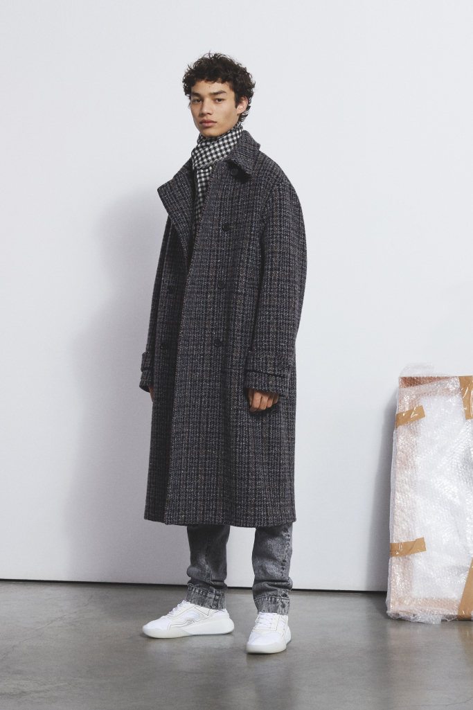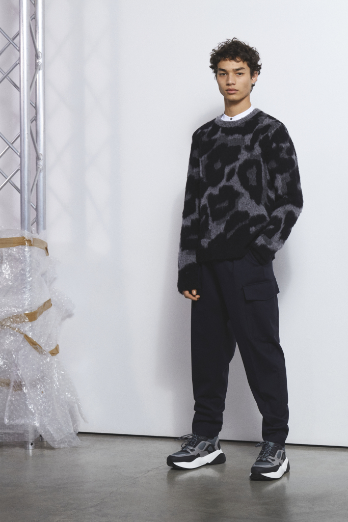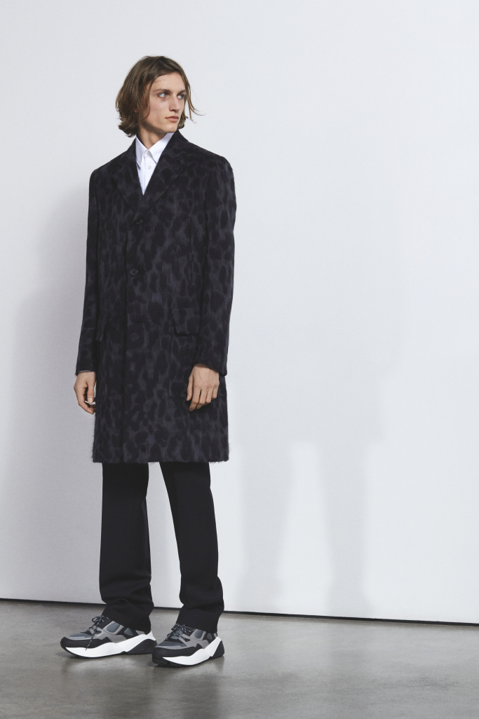 With all the hubbub, it was hard to focus on the clothes, or even find them, though perhaps that was also because the gangs of models clustered about the space—S.I.R. Studios, a 50-year-old instrument rental and recording institution—almost disappeared into the set design, like ghosts of the studio’s rock heyday. “I think everything I do will probably, without me even trying, relate to rock ‘n’ roll,” McCartney explained. That came through in a series of experiments with an old favorite: animal prints, for both men and women—blown up on fuzzy knitwear, blurred to look like camouflage, or layered over houndstooth checks. This was only the second time McCartney has shown her men’s and women’s collections together, and the format was underscored by another prominent work of neon: a large, flashing Time’s Up logo. “I have two boys and two girls, and I really just want them to not even know what Time’s Up is,” she said.