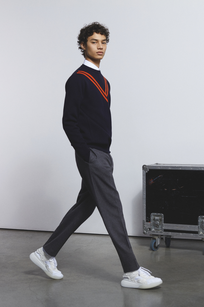 The other strand in McCartney’s DNA is, of course, her environmentalist bent. This season, in addition to her signature vegan furs and leathers and a special recycled nylon, she’s introducing a more sustainable range of eyewear and a new sneaker for both men and women, the fully recyclable Loop trainer, assembled with tiny internal hooks instead of toxic glue (the on-trend sock knit style also happens to eliminate cutting waste). It’s details like these that prove McCartney’s commitment to changing the industry is serious—even if her presentations are serious fun.
