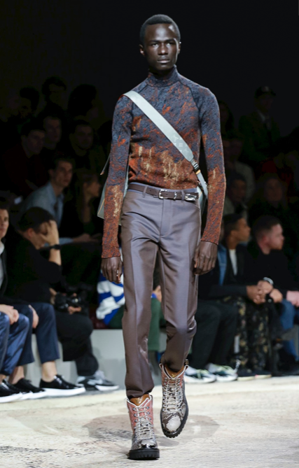 In addition, the main print of the collection (a photographic composition of mountain and landscape images captured during a helicopter flight across Kenya) made a nostalgic nod to the designer’s debut collection for Louis Vuitton (men’s Spring 2012), when he included masai patterns (red and blue check motifs) in his collection. He therewith paid homage to Kenya, where he grew up, one last time – the cycle is complete.