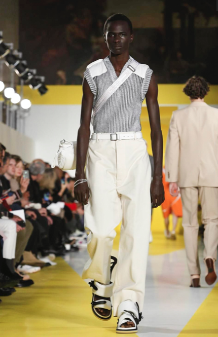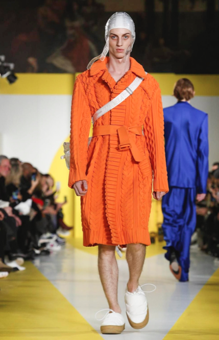 Take a glance at look 9 from our Autumn-Winter 2018 Men’s Collection designed by @jgalliano. A décortiqué cardigan reminiscent of the Artisanal line is paired with the menswear interpretation of the ‘Glam Slam’, here in Klein blue.
