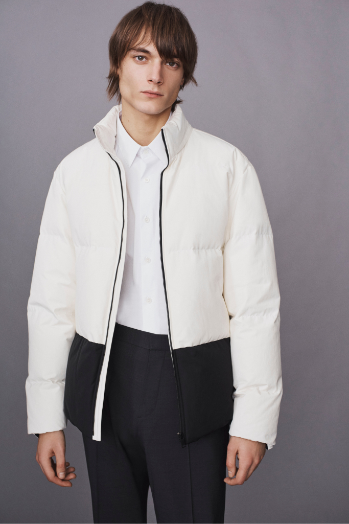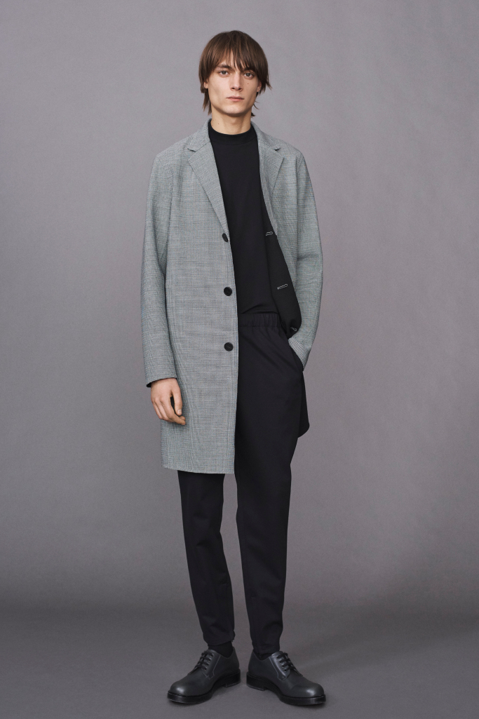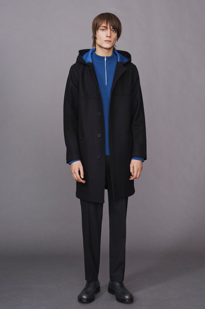 Martin Andersson, the former creative director at COS, who now has two Theory men’s collections under his belt, tasked his team with taking advantage of Fast Retailing’s Innovation Center in the Meatpacking District. Andersson wanted them to think up new fabrics and construction methods that brought technical details to the collection. He also pulled from the last year he’s spent living in New York and artist Ellsworth Kelly’s graphic work.