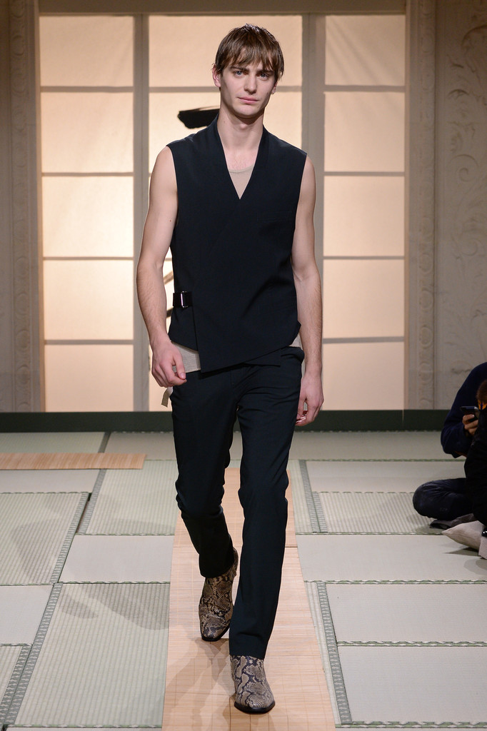 After removing shoes and slipping into tabis (Japanese ankle socks, that is) the theme of the night became obvious. We had travelled from Paris to a traditional Japanese tatami room, clearly referencing the core inspiration of the collection.