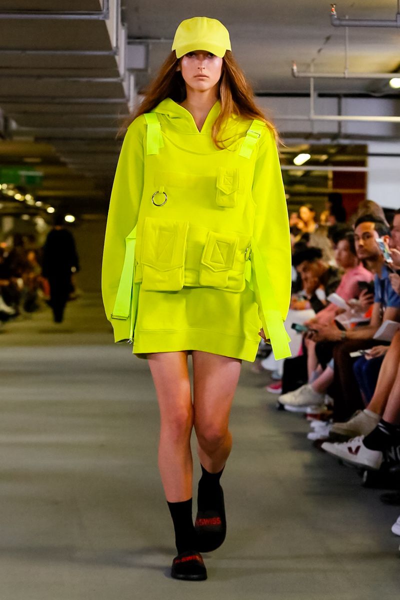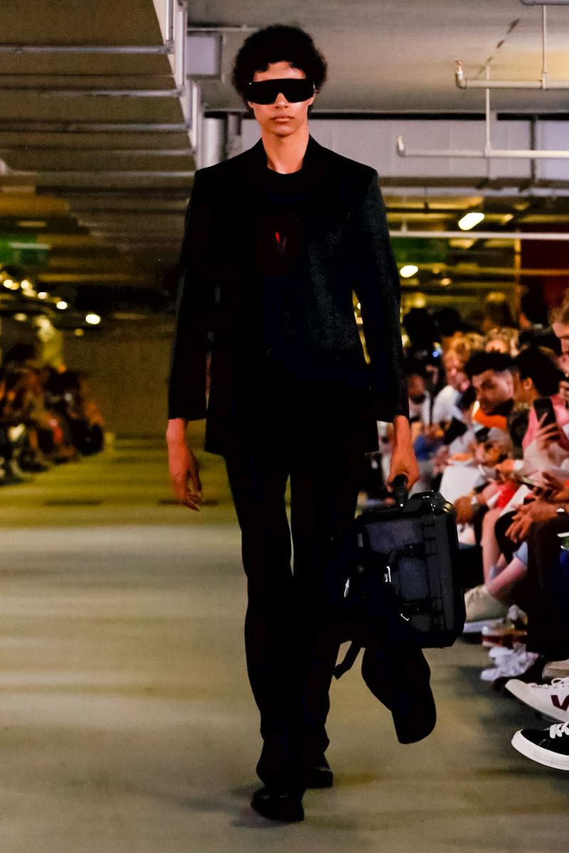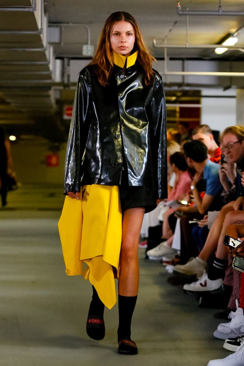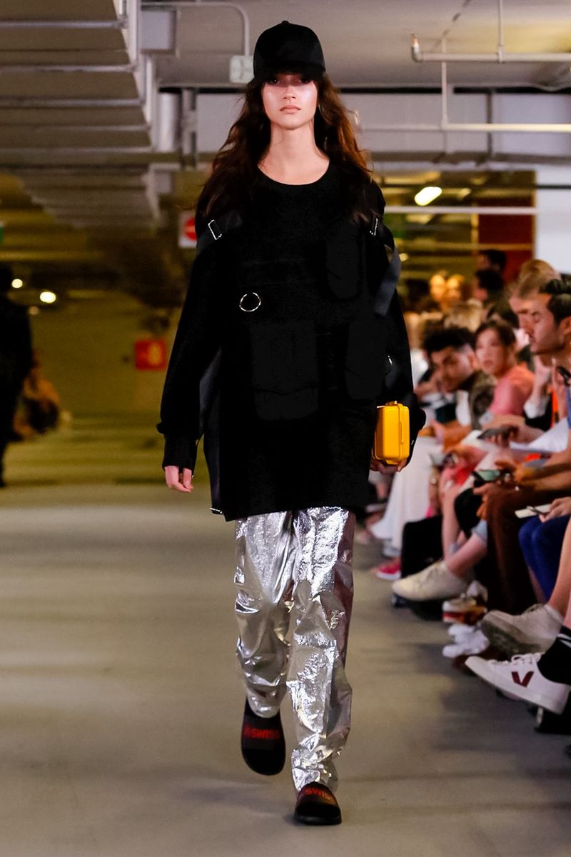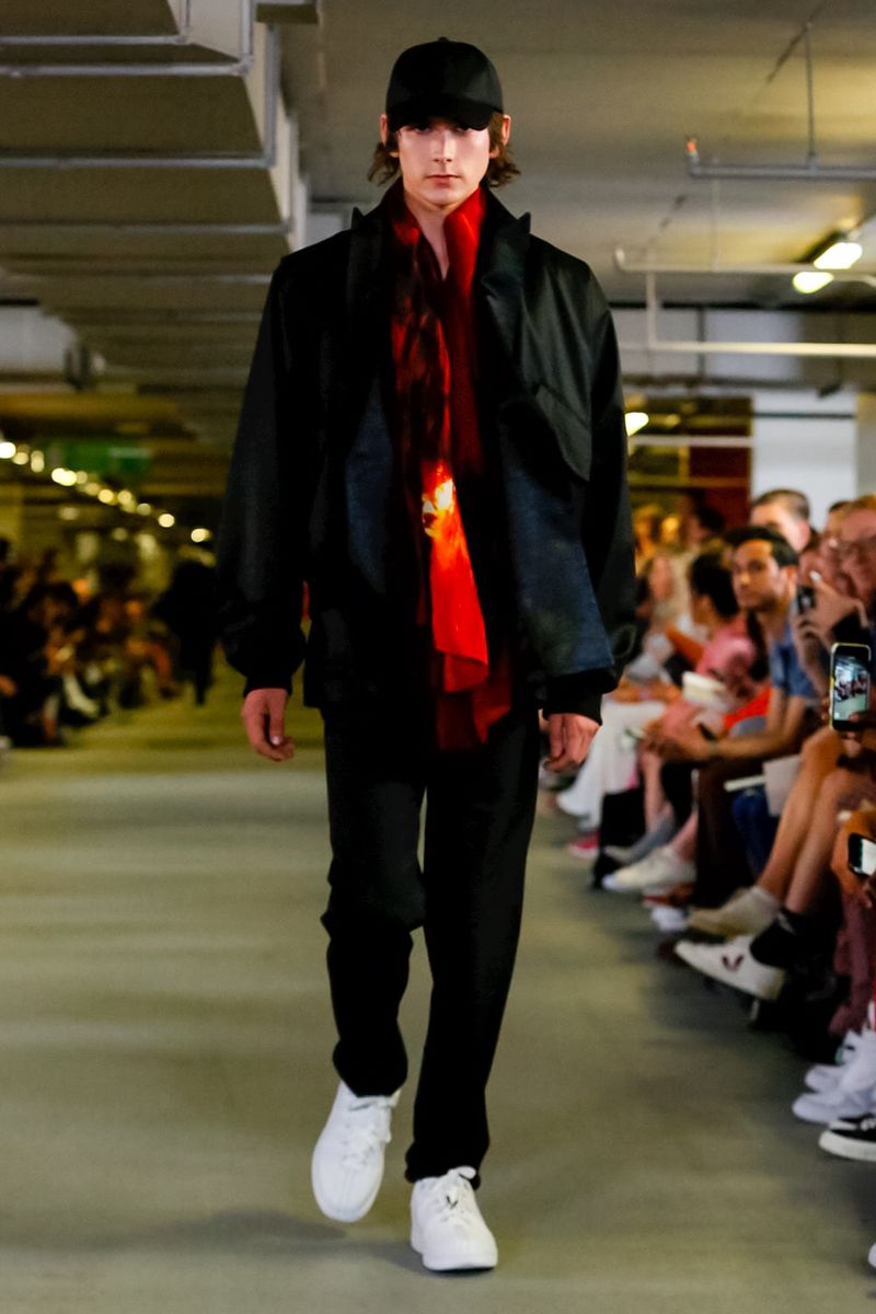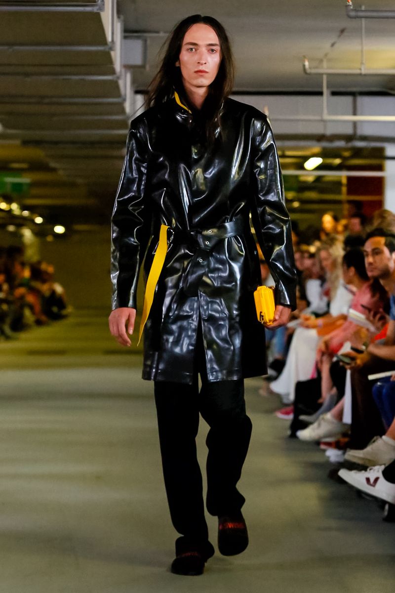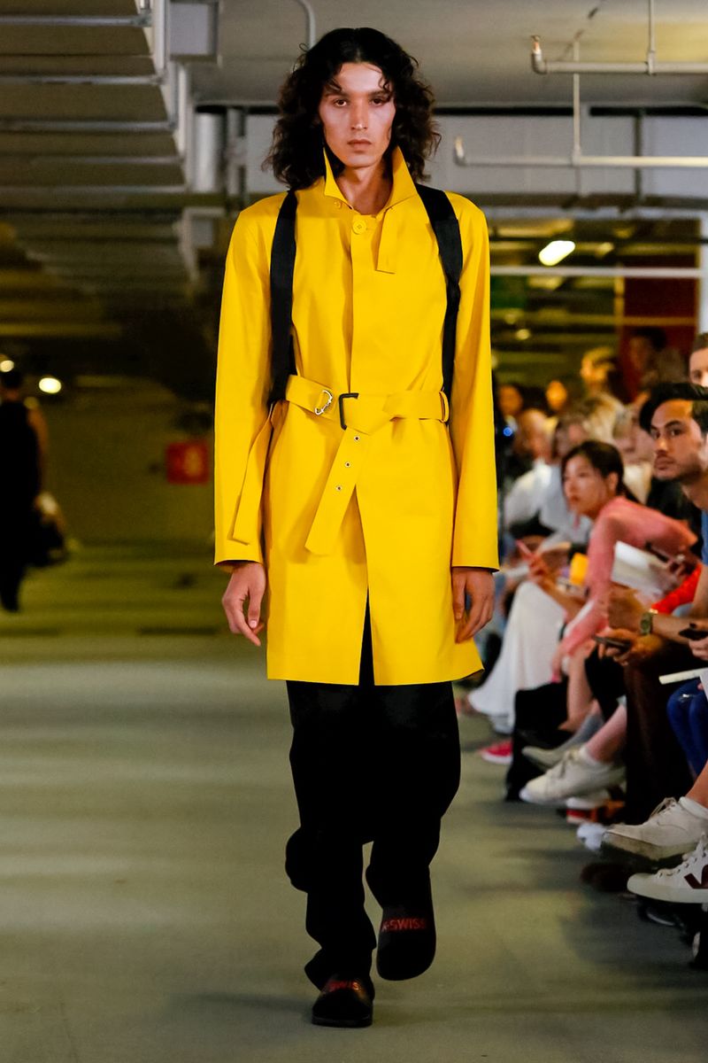 With all 100% recycled band merchandise at Q Car Park in Poland Street London, where the collection was taken, Matthew Miller, discovered its inner thoughts and re-design classics like long sleeves, straight trousers, silver shirts, yellow coats, all ready for a Summer in London.