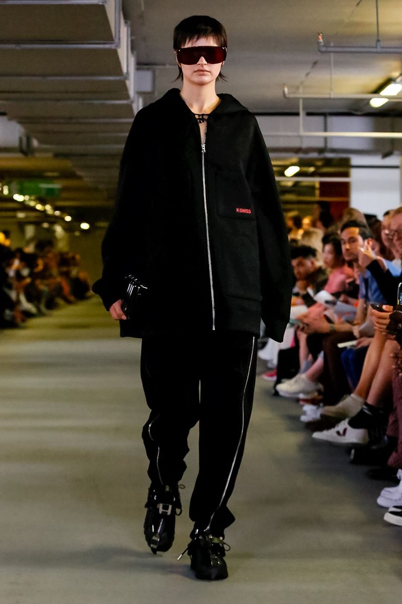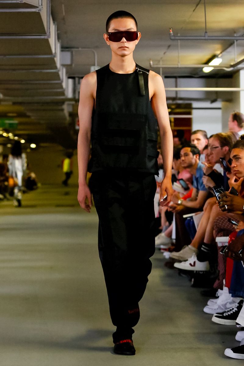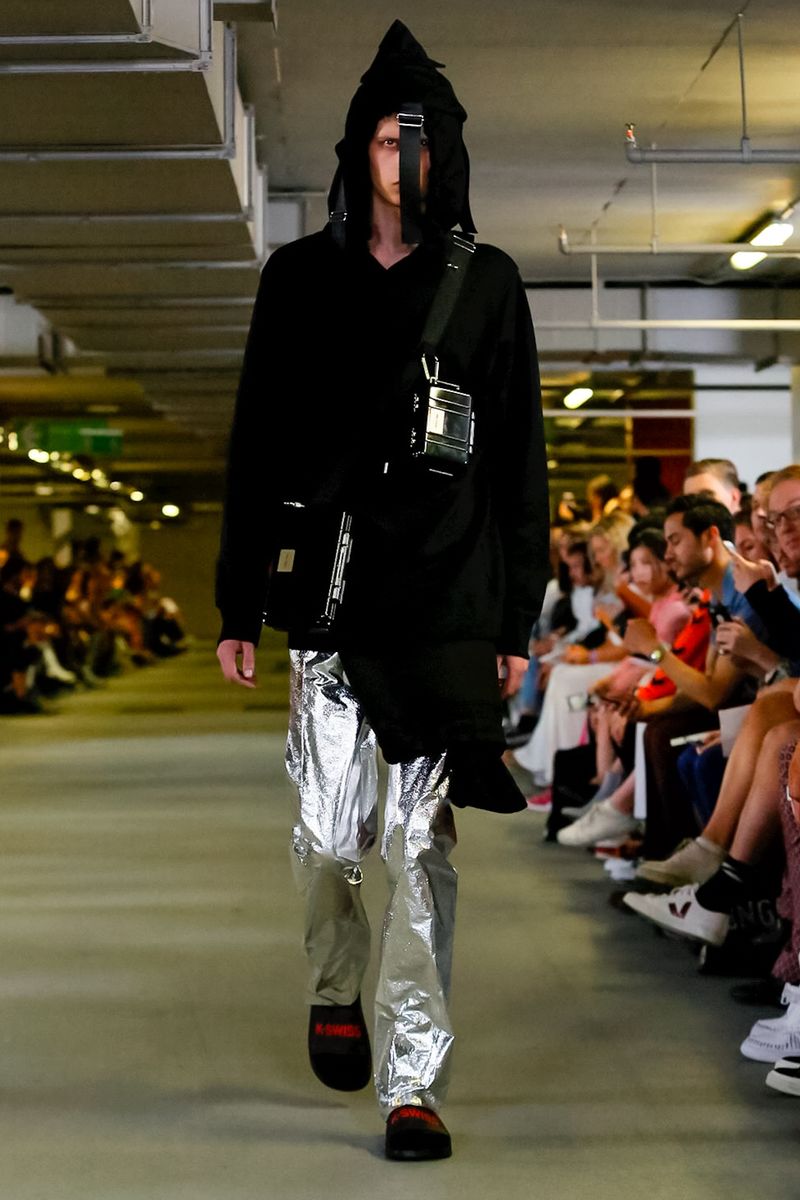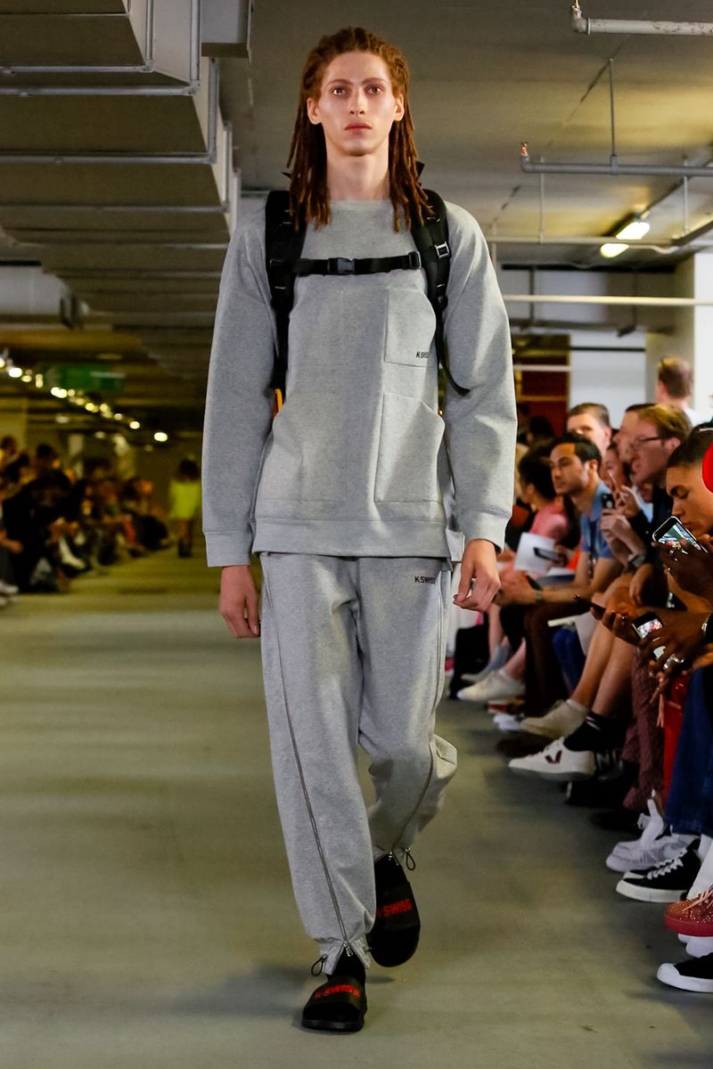 Collection titled “Paradise Lost” Spring/Summer 19. Showing at second date at  London Fashion Week, a dark emo presentation, sober but superb, Matthew needs a motivational push given by KSWISS.