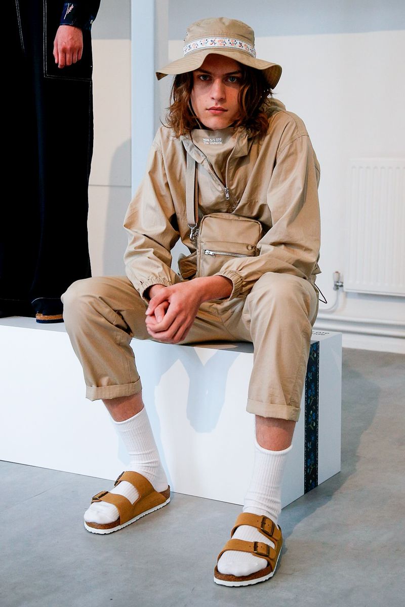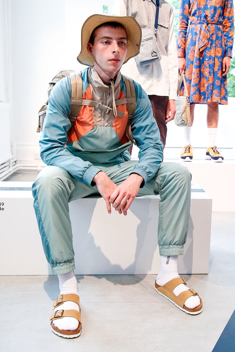 But also shows a contemporary streetwear is infused with elements from outdoor life with pastel summer tone, earth tones, off whites, mixed it up with colorful shirts, heavy back-packs and modern sandals.