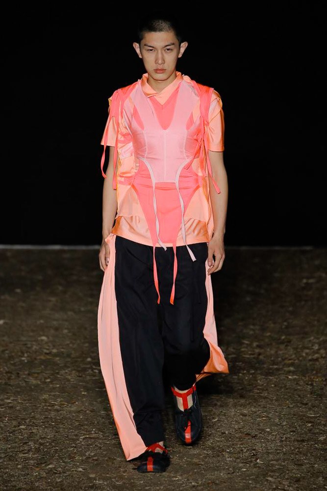 He brought his singular avant-garde aesthetic to the historic Boboli Gardens with subverting classic masculine silhouettes with fluid shapes, sporty accents and neon tones.