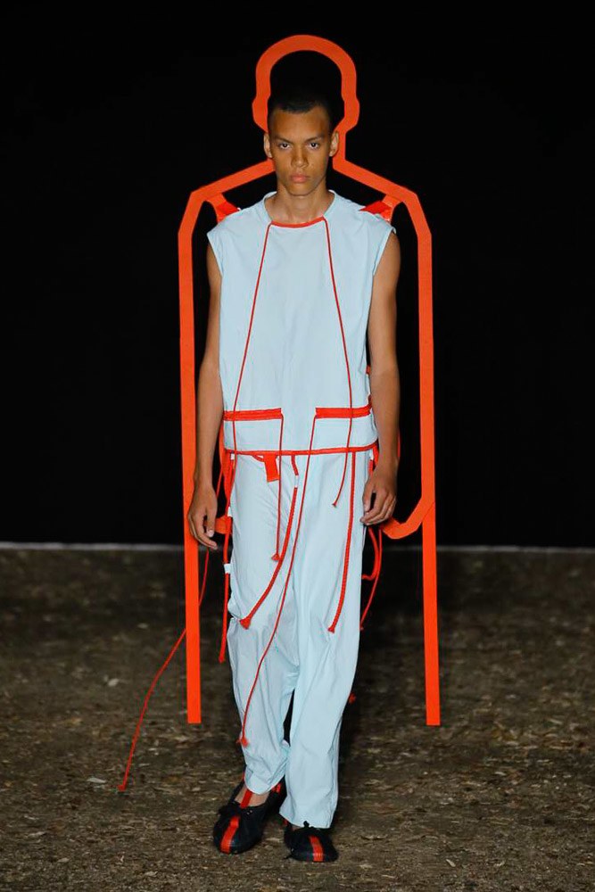 A style, that Craig Green labeled as a mix workwear influences and futuristic volumes, sculptural silhouettes and functional aspects.