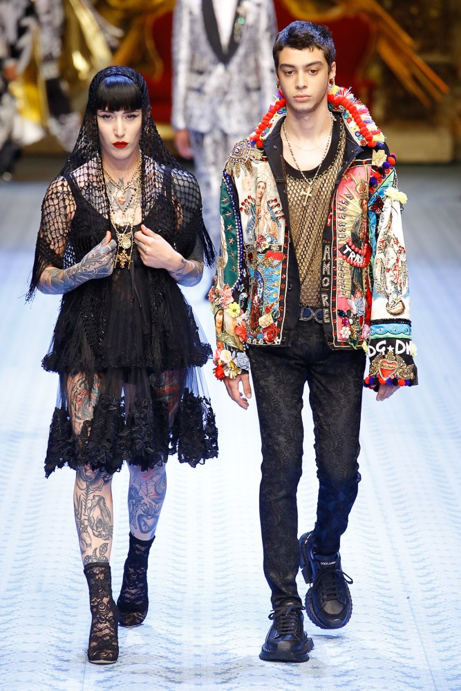 “That was was our DNA, our classics, what we have always done, while this is about the new,” Dolce said, the designers again returned to their crowd-drawing, social media–led policy of casting millennials.