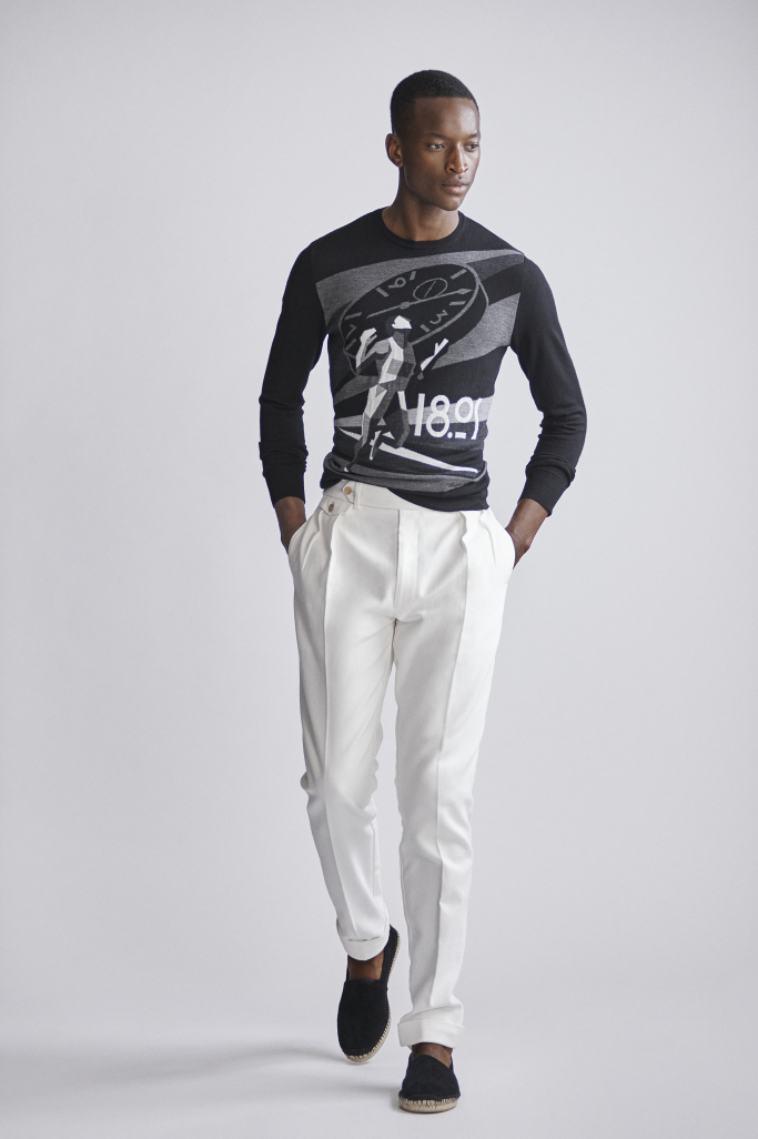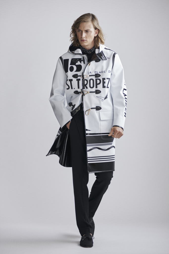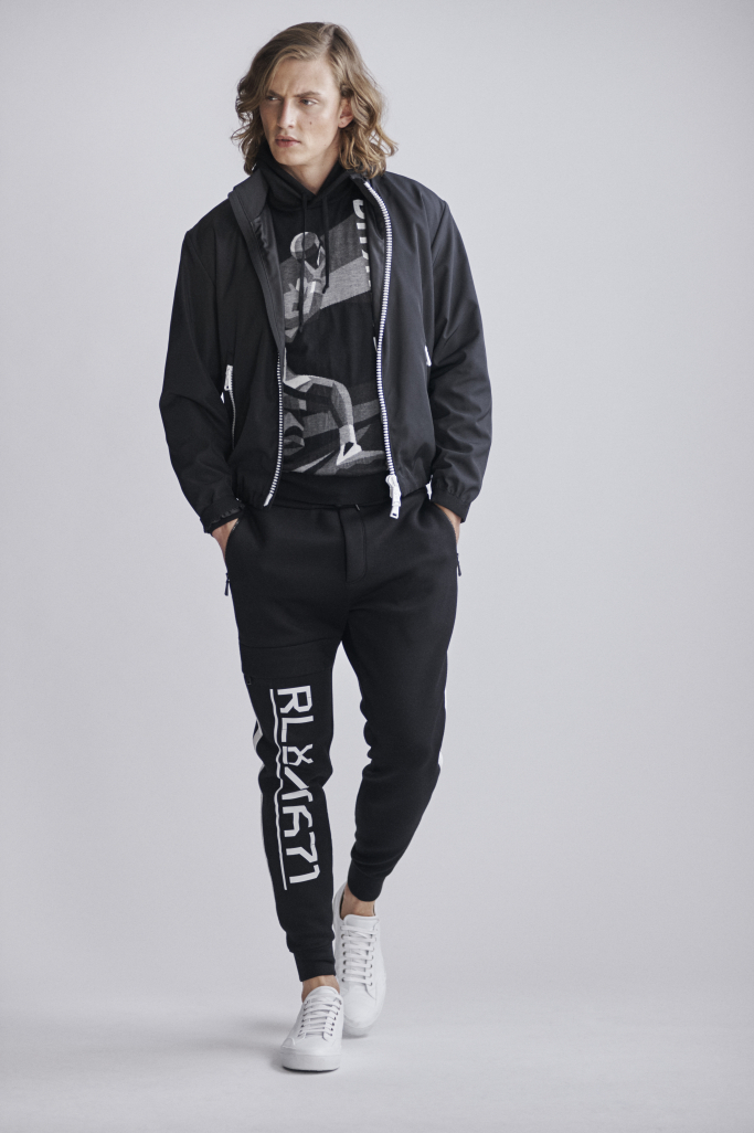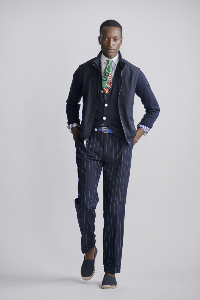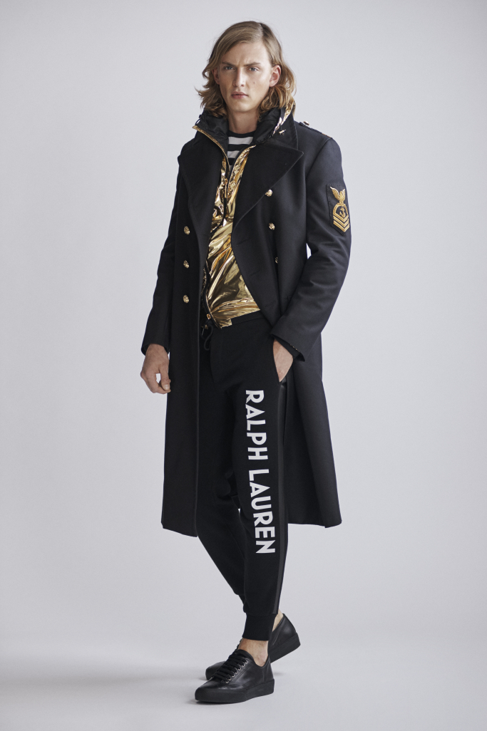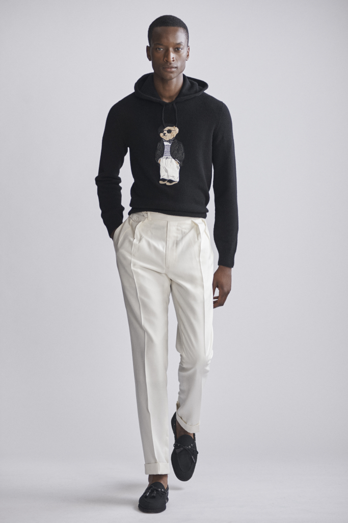 When he wasn’t thinking about midnights at the oasis, Lauren was focused on street-style fare, inspired by seaside resorts like Saint Tropez or, in the case of the nice cashmere patterned hoodies, Art Deco sporting posters.