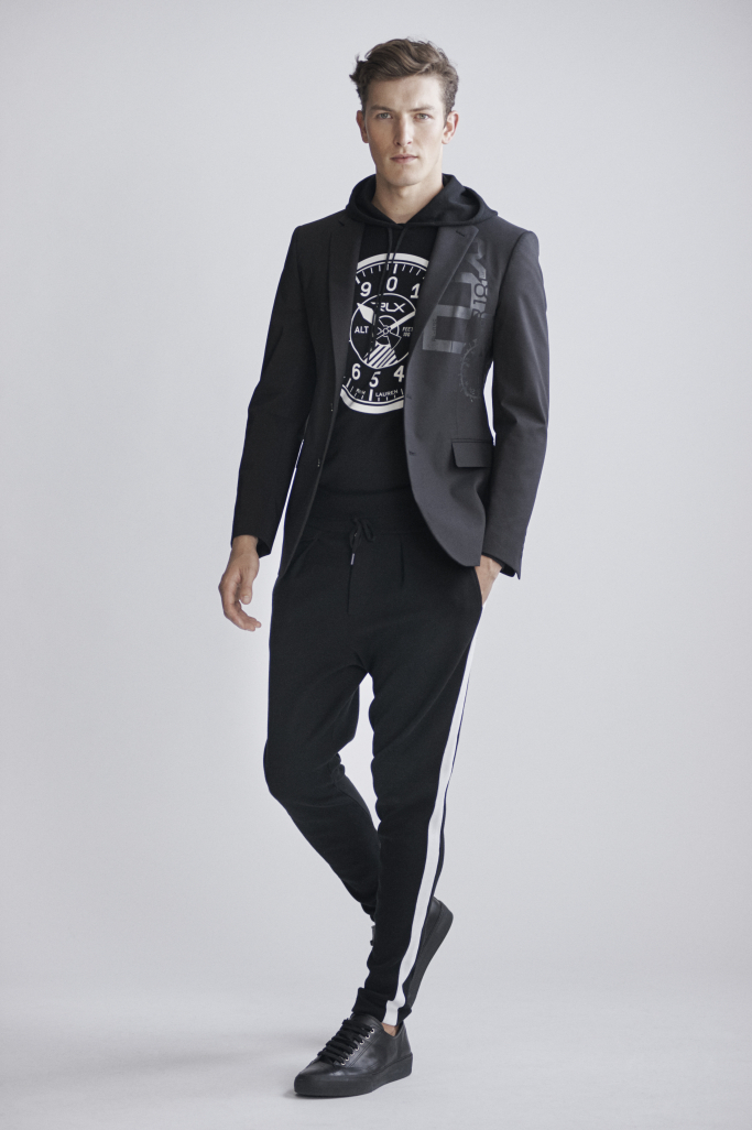When he wasn’t thinking about midnights at the oasis, Lauren was focused on street-style fare, inspired by seaside resorts like Saint Tropez or, in the case of the nice cashmere patterned hoodies, Art Deco sporting posters.